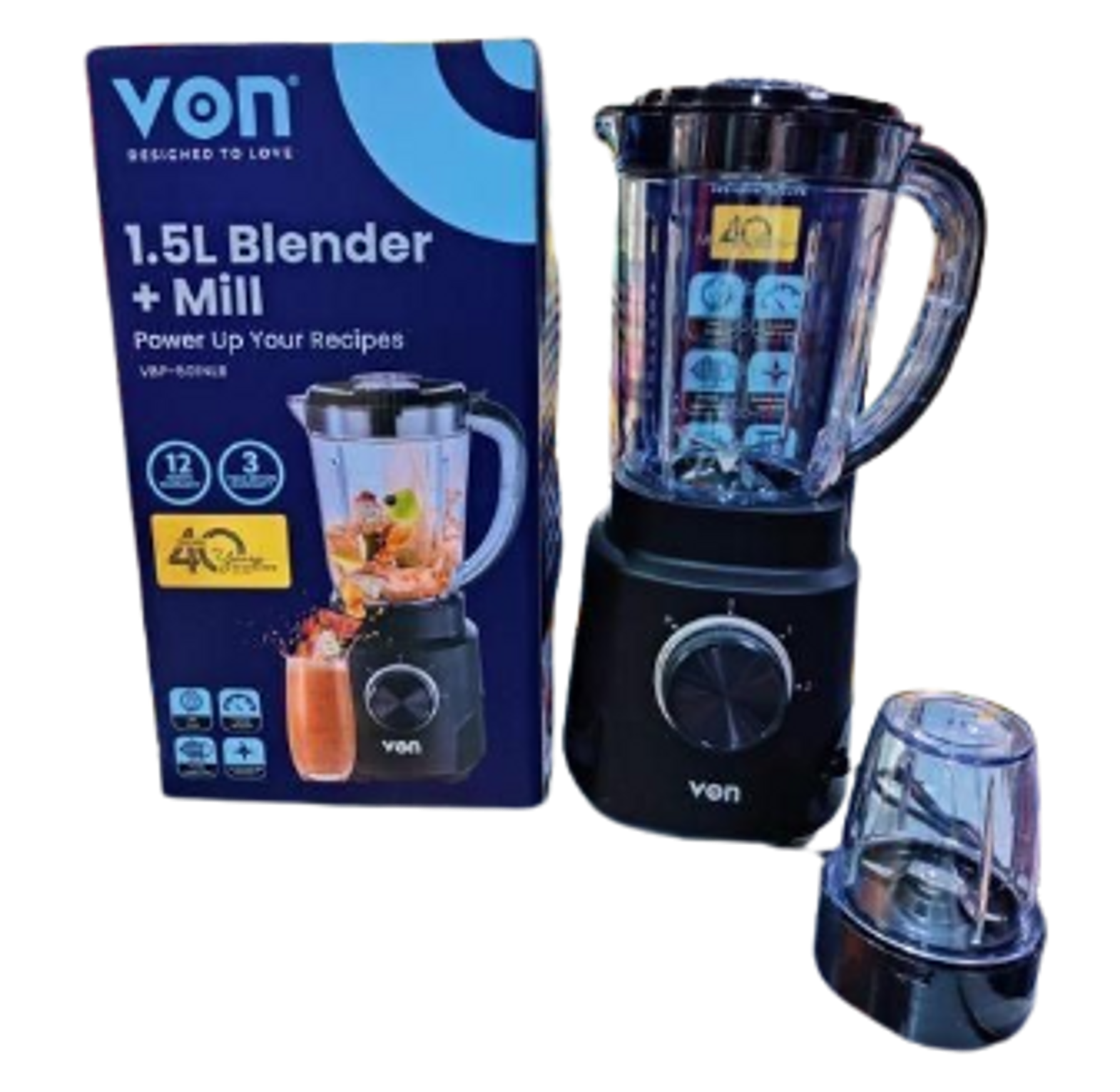 Blender for fruits, vegetables, and ice crushing Grinder for milling spices, coffee beans, and nuts 2 speeds and pulse function