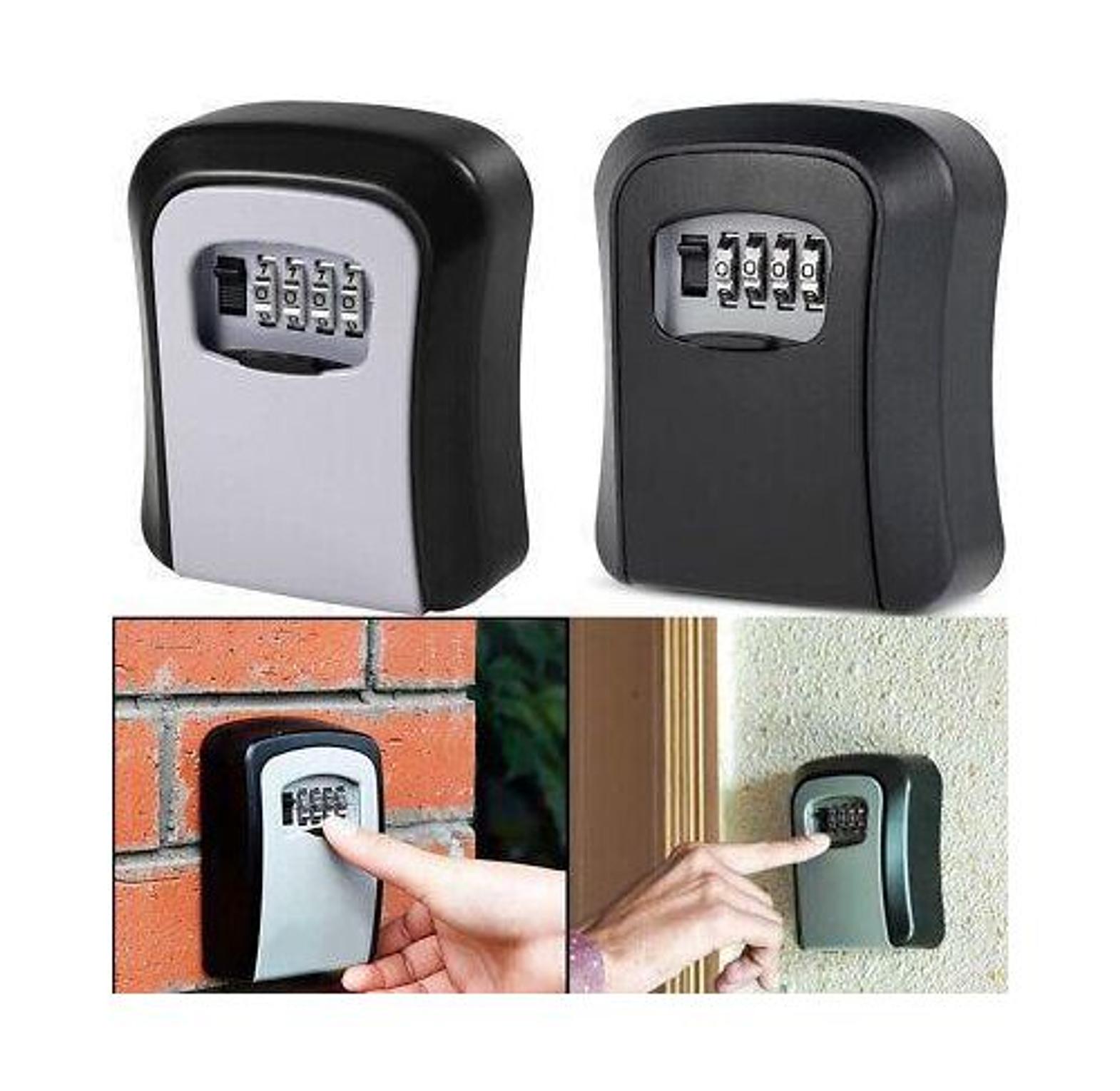 This device is designed to securely store keys outdoors, typically mounted on a wall near an entrance. It features a resettable 4-digit combination lock, offering up to 10,000 possible combinations for enhanced security. The robust construction, often made of materials like zinc alloy, provides resistance against weather conditions (waterproof, rustproof) and physical tampering like hammering, sawing, or prying. A sliding cover often protects the dials from environmental elements.
