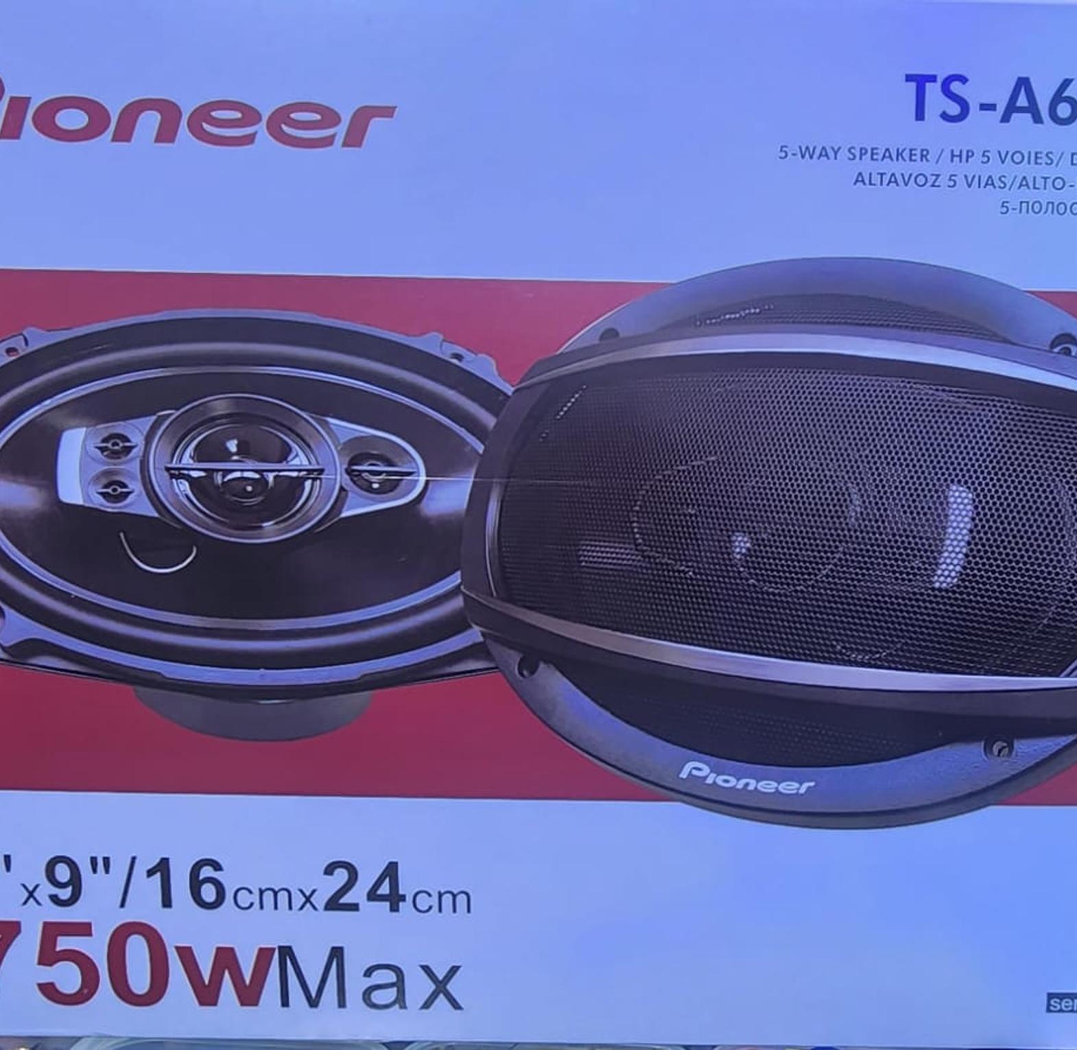 These are 5-way coaxial speakers from Pioneer's A-Series, designed for car audio systems. They are built to deliver high-resolution audio with features like bass boost and surround sound for an immersive listening experience.