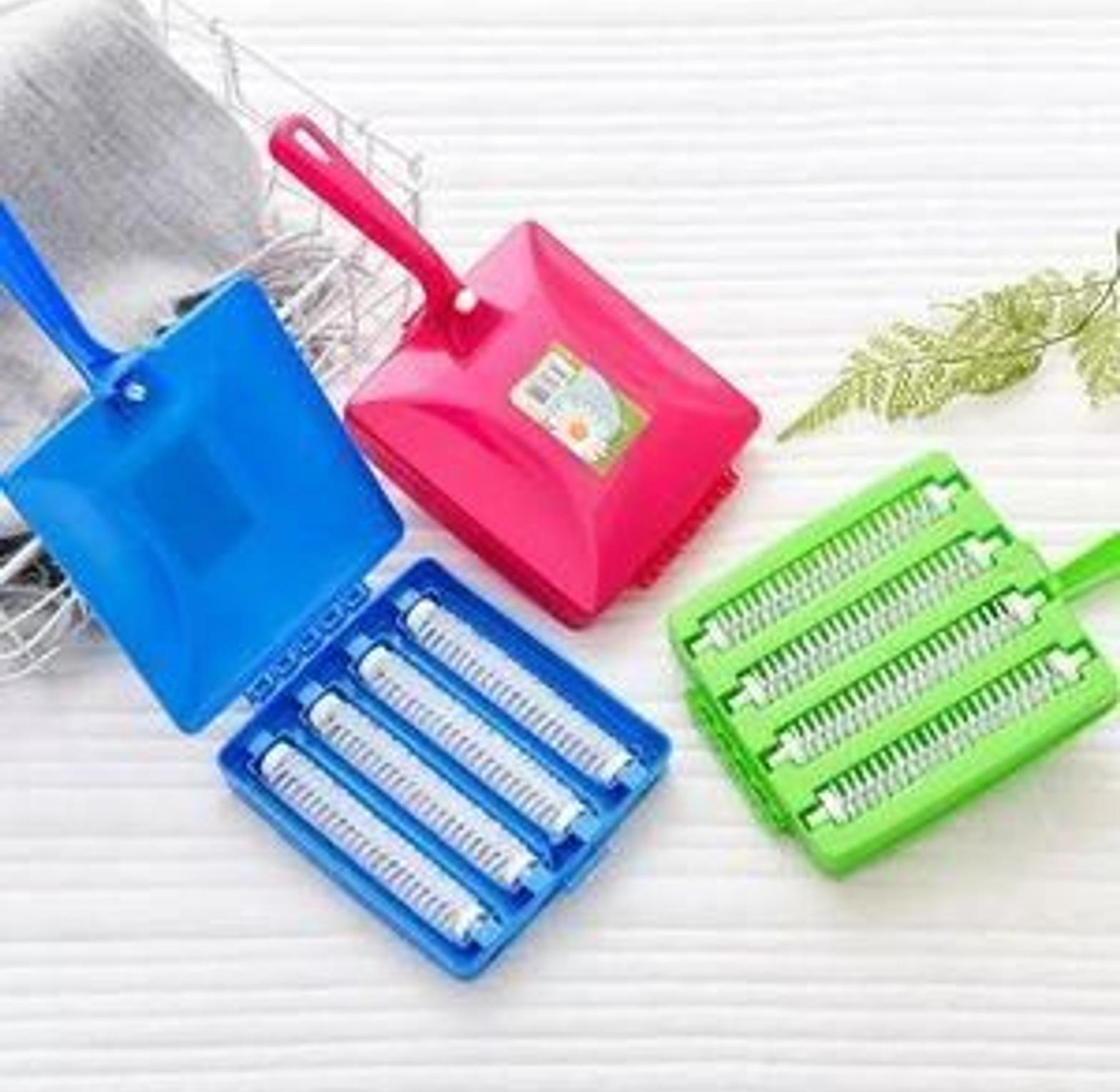 Multipurpose Cleaning Brush with 3 Rollers sweeps up dust, dirt and crumbs from surfaces. 3 Rollers with tough nylon bristles sweeps up and collects dust and deposits inside a dust container. Push button opens the container to empty the contents into a dustbin. Easy to hold and clean. Use on table linens, sofas, chairs, carpets, mats, rugs, desks and many other surfaces. Durable Plastic. Reusable Brush for regular household use.