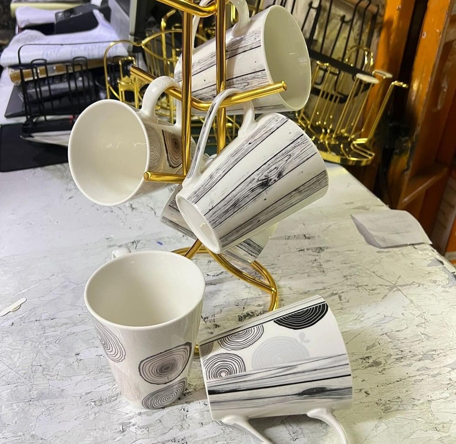 A stylish set of six ceramic mugs, perfect for elevating your coffee or tea experience.