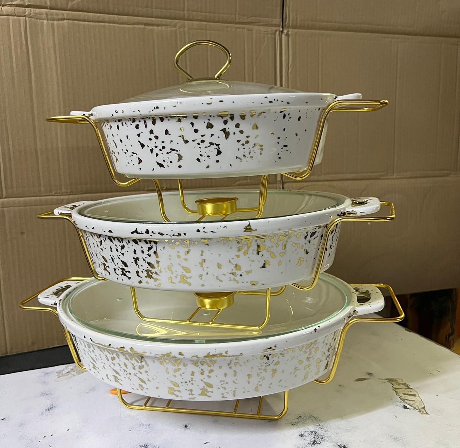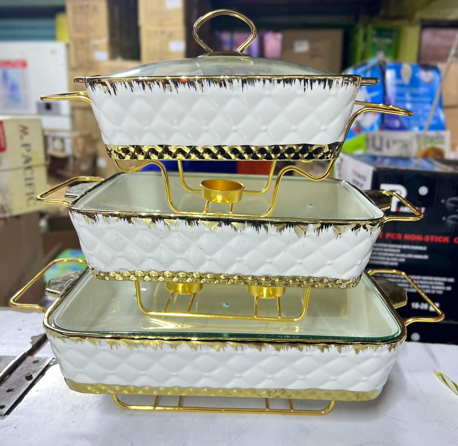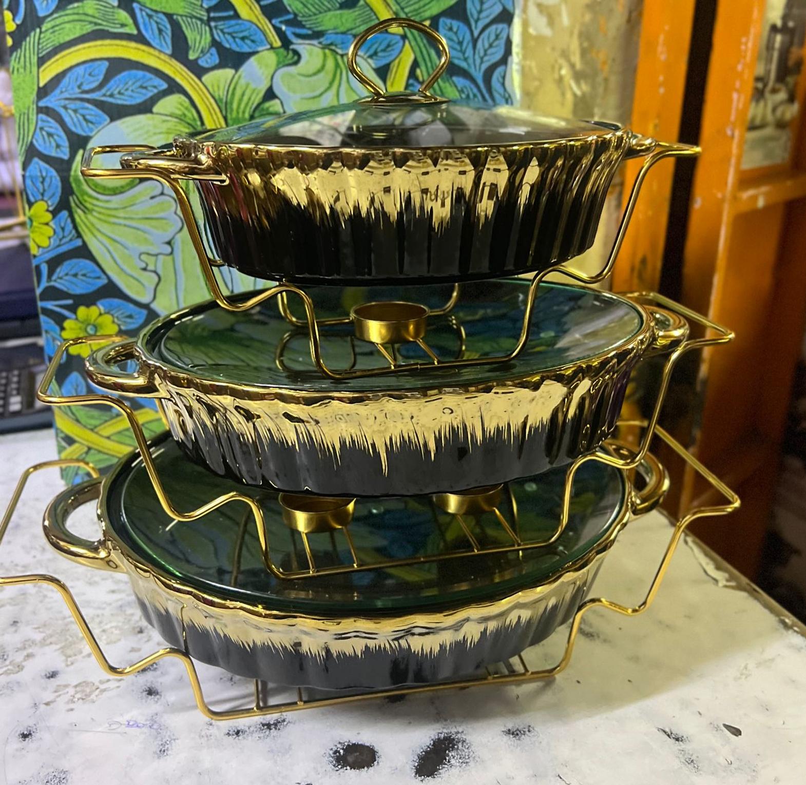 Elegant and Classy 3pcs Food Warming Set with glass lids. They are Unique and Elegant Food Warmers used when having a family meal or even when has guests. The entire set is Microwave, Refrigerator and Dishwasher safe. Fine Porcelain, Hard texture, Durable, Scratch proof and Easy to wash. Delicate transparent, gentle jade, from the inside to the outside with Noble and Charming temperent. All 3pcs come in different sizes. Every serving Dish comes with transparent glass Lids for easier identification of what is in the dishes without having opening the dishes. Elegant and Classy 3pcs Food Warming Set with glass lids. They are Unique and Elegant Food Warmers used when having a family meal or even when has guests. The entire set is Microwave, Refrigerator and Dishwasher safe. Fine Porcelain, Hard texture, Durable, Scratch proof and Easy to wash. Delicate transparent, gentle jade, from the inside to the outside with Noble and Charming temperent. All 3pcs come in different sizes. Every serving Dish comes with transparent glass Lids for easier identification of what is in the dishes without having opening the dishes.