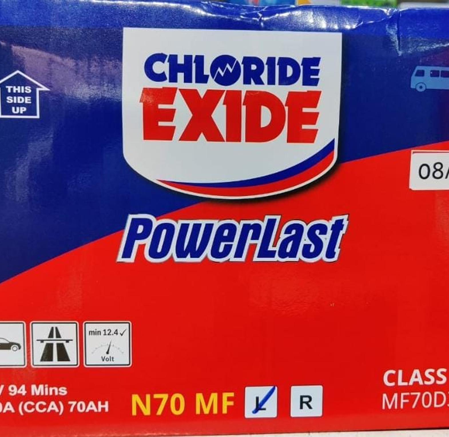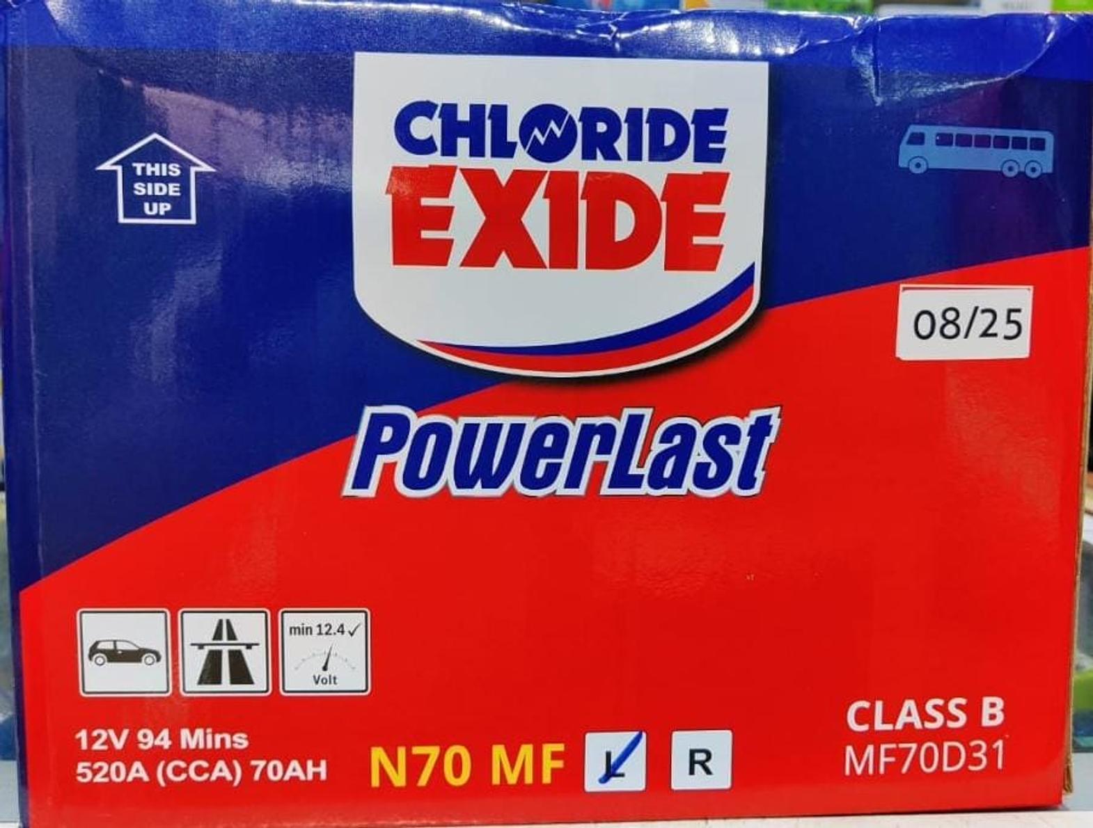 The Chloride Exide PowerLast N70 MF R is a maintenance-free automotive battery designed for reliable starting power and extended service life. It is suitable for vehicles without Start & Stop systems and features a low-corrosion, patented Power Frame grid for enhanced durability and optimal current flow.