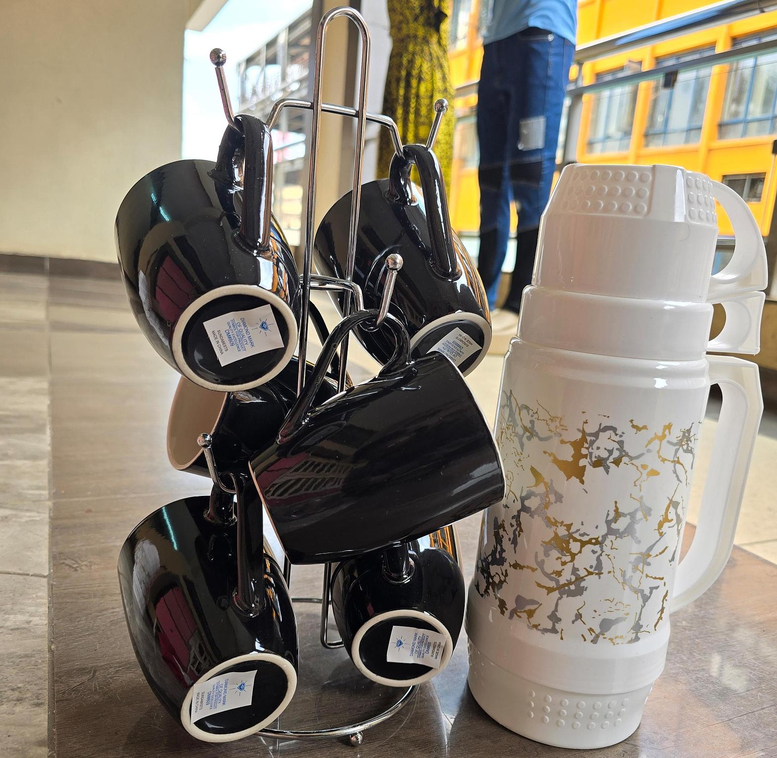 Set of 6pcs classic mugs and comes with One vacuum flask