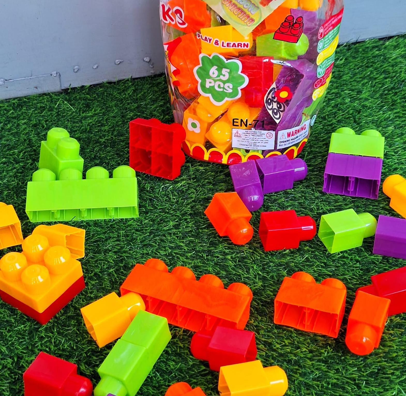 A set of building blocks, commonly referred to as "Construction Toy Blocks" or "Building Blocks for Kids." The specific set in the image appears to be a "65 PCS" (65 pieces) set, as indicated on the packaging.