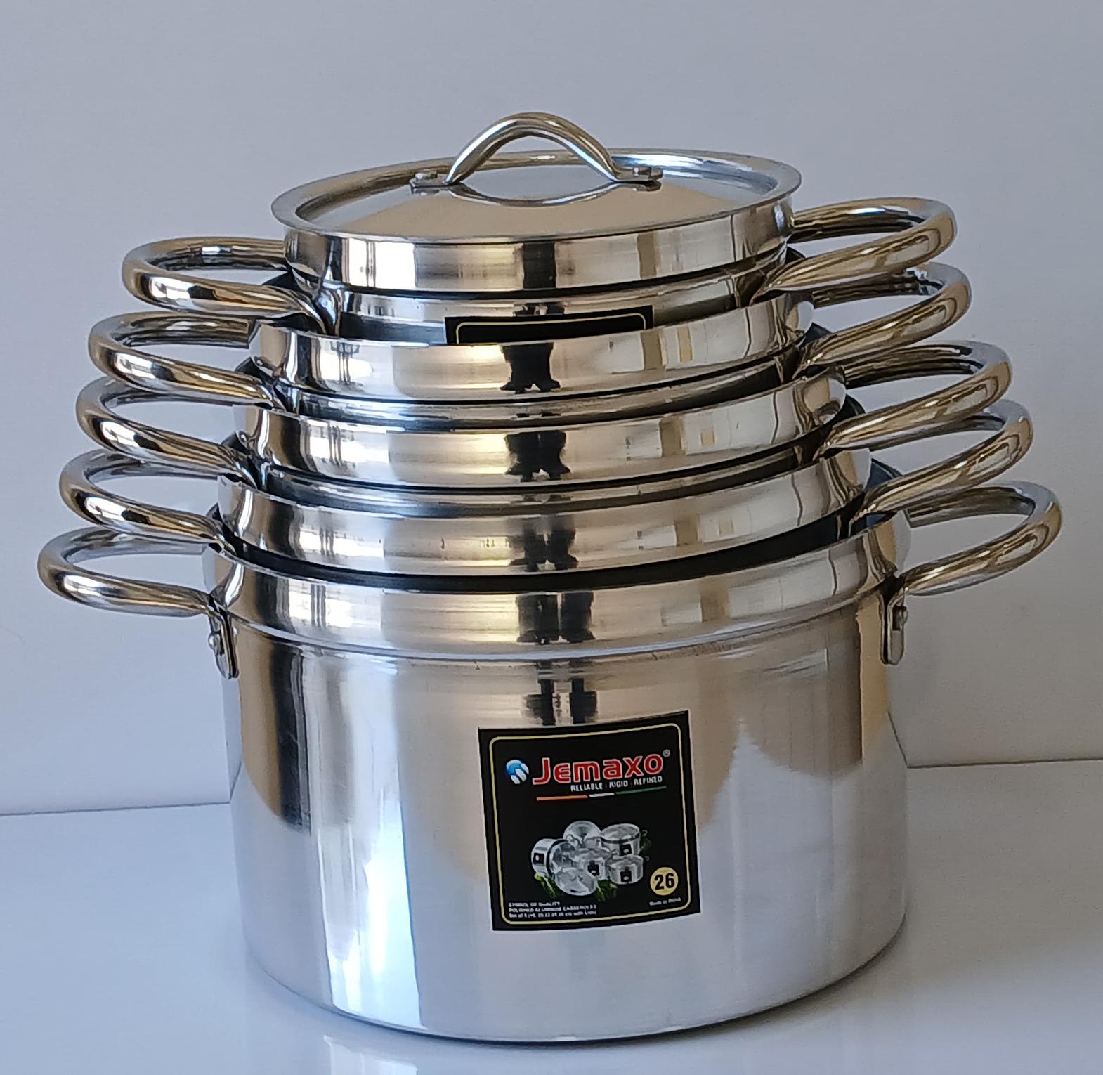 This Cookware set is made of and pure aluminum encapsulated in the base for fast and even heating and optimal cooking performance. Tight-fitting covers seal in moisture and nutrients for healthier, more flavorful results, every time you cook. Solid stainless steel riveted handles stay cool on the stove top. Ideal even for charcoal jiko or cooking during outdoor cooking. Order this Sufuria set online today from Vicmer Store at a great, affordable price and have it delivered right at your doorstep.