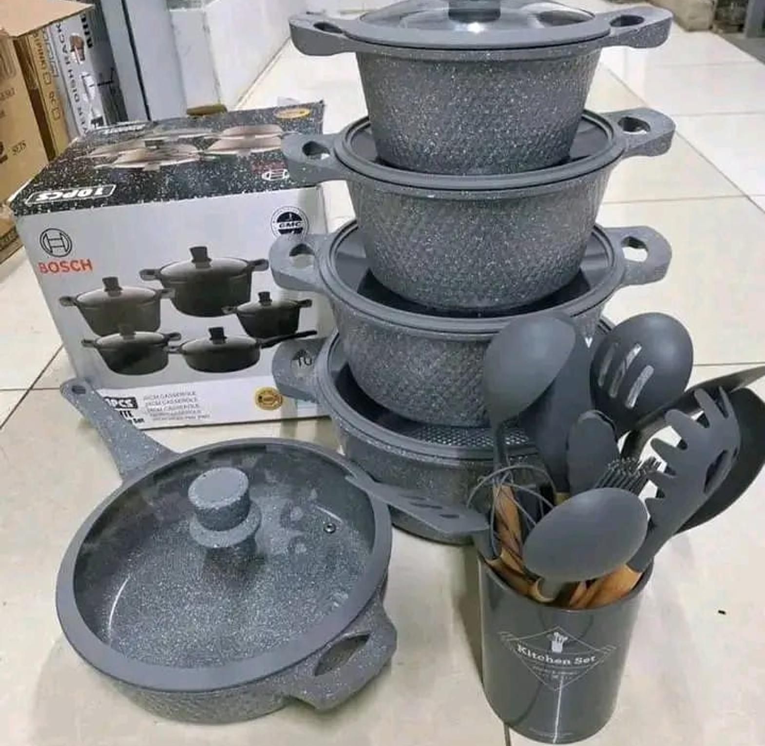 Elevate your cooking experience with the 10pcs Silicone Bosch Cookware Set, now available on Vicmer Store Kenya. Crafted with premium-grade materials, this cookware set offers durability, ease of maintenance, and superior performance for all your culinary endeavors. Experience the convenience of non-stick cooking with these granite-coated pots that make cleanup a breeze. The non-stick surface ensures that food slides off effortlessly, while the durable construction ensures long-lasting use. Say goodbye to burnt food, as the protective layer on these pots prevents scorching and ensures even heat distribution for perfectly cooked meals every For added convenience, use only wooden or silicone spoons to cook or serve, as they won't scratch the surface of these high-quality pots. From simmering soups to searing meats, this comprehensive set has everything you need to prepare delicious meals with ease. Order the 11pcs Silicone Bosch Cookware Set from Vicmer Store Kenya today and revolutionize your cooking experience. With its unbeatable combination of durability, ease of maintenance, and stylish design, this cookware set is sure to become a staple in your kitchen.