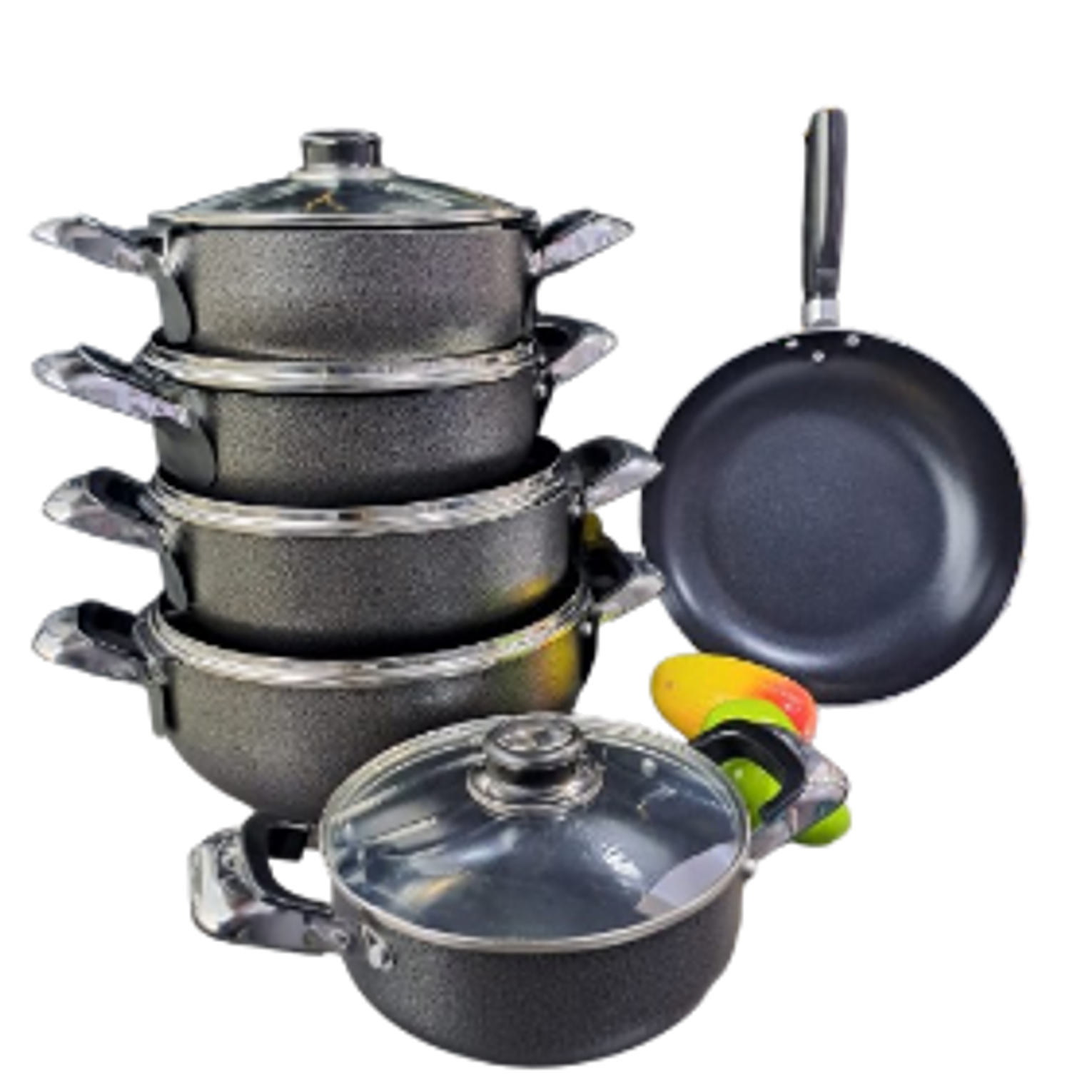 Durable cooking pots provides long lasting superior Non-stick performance and has different sizes for different cooking needs hence you can cook different delicacies. It is light and easy to maintain with protective layer added to make it less reactive and more scratch resistant. It also has glass lids makes viewing food easy from start to finish. It is both a healthy and an Eco friendly way to cook, suitable for home and can be used for long time. Furthermore it spreads heat evenly and is energy efficient, and makes it easier to regulate heat so the food does not burn and stick.