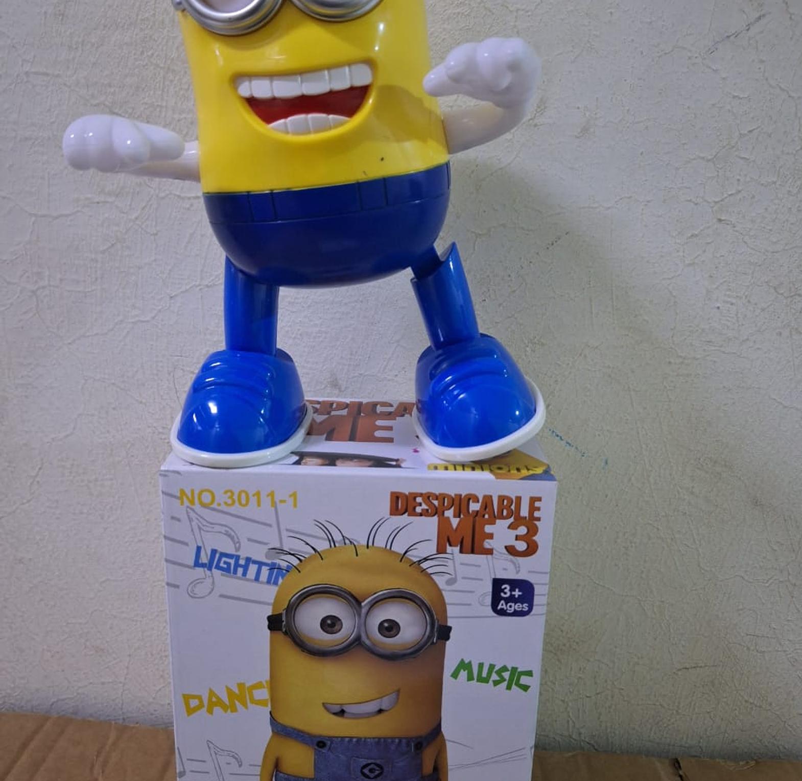 Dancing Movements: The minion toy wiggles and moves, often with rotating arms and eyes, creating a dynamic play experience. Lights and Music: It features flashing lights and plays catchy music or sound effects to stimulate visual and auditory senses. Character Design: The toy captures the appearance of a Minion from the Despicable Me franchise, with its iconic yellow body, goggle design, and blue overalls. Specifications: Material: Made from durable, non-toxic plastic. Power Source: Typically battery-operated, often requiring AA batteries (not included). Age Recommendation: Generally recommended for children aged 1+ or 3+ years, depending on the specific model. Features: May include an easy on/off switch, light-up eyes, and musical capabilities.