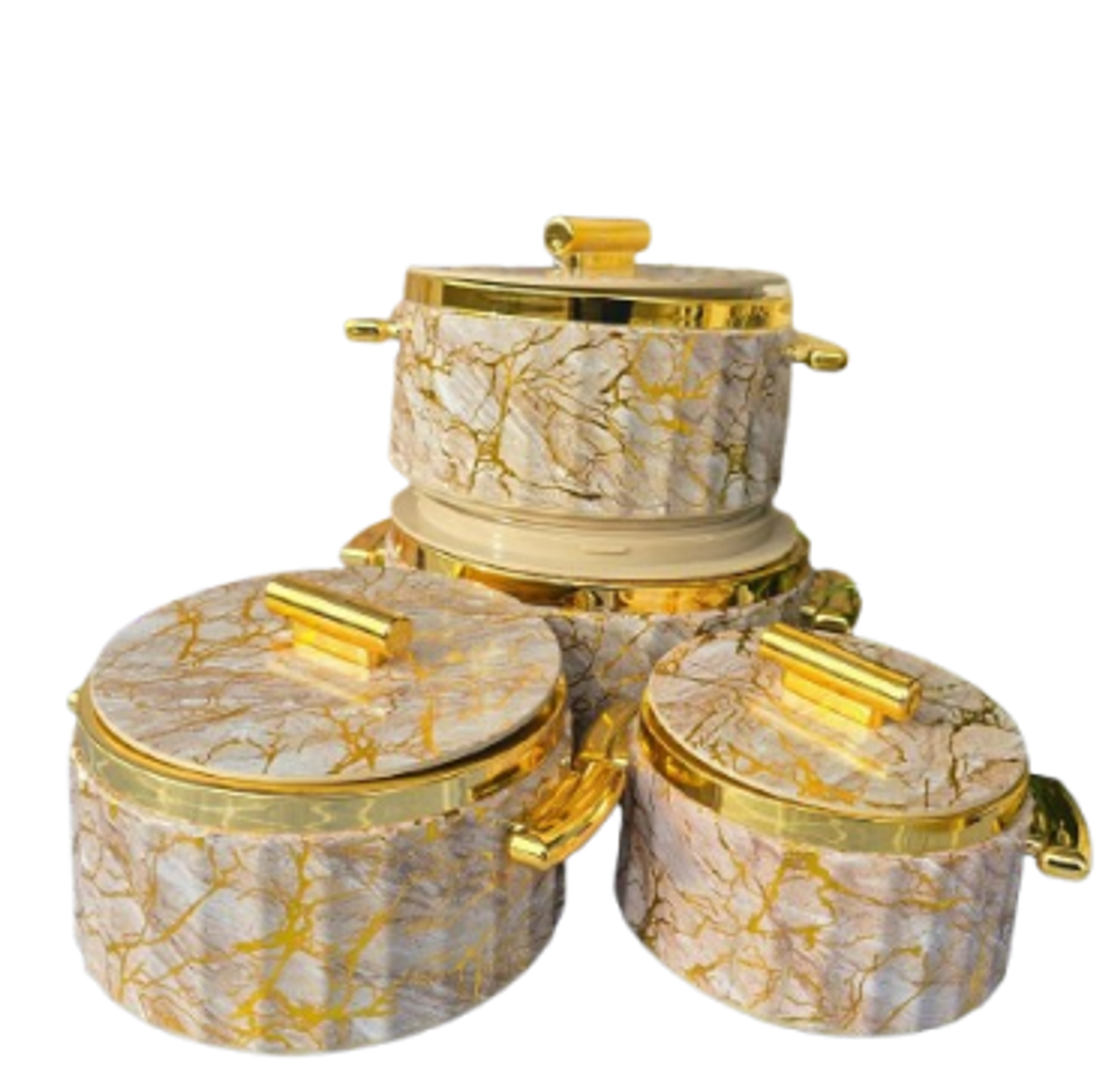 This premium 4-piece marble hotpot set is perfect for keeping your meals hot and fresh. Designed with elegance and functionality in mind, each pot features thermal insulation and golden-accented handles and lids. Ideal for home use, gifting, or events.