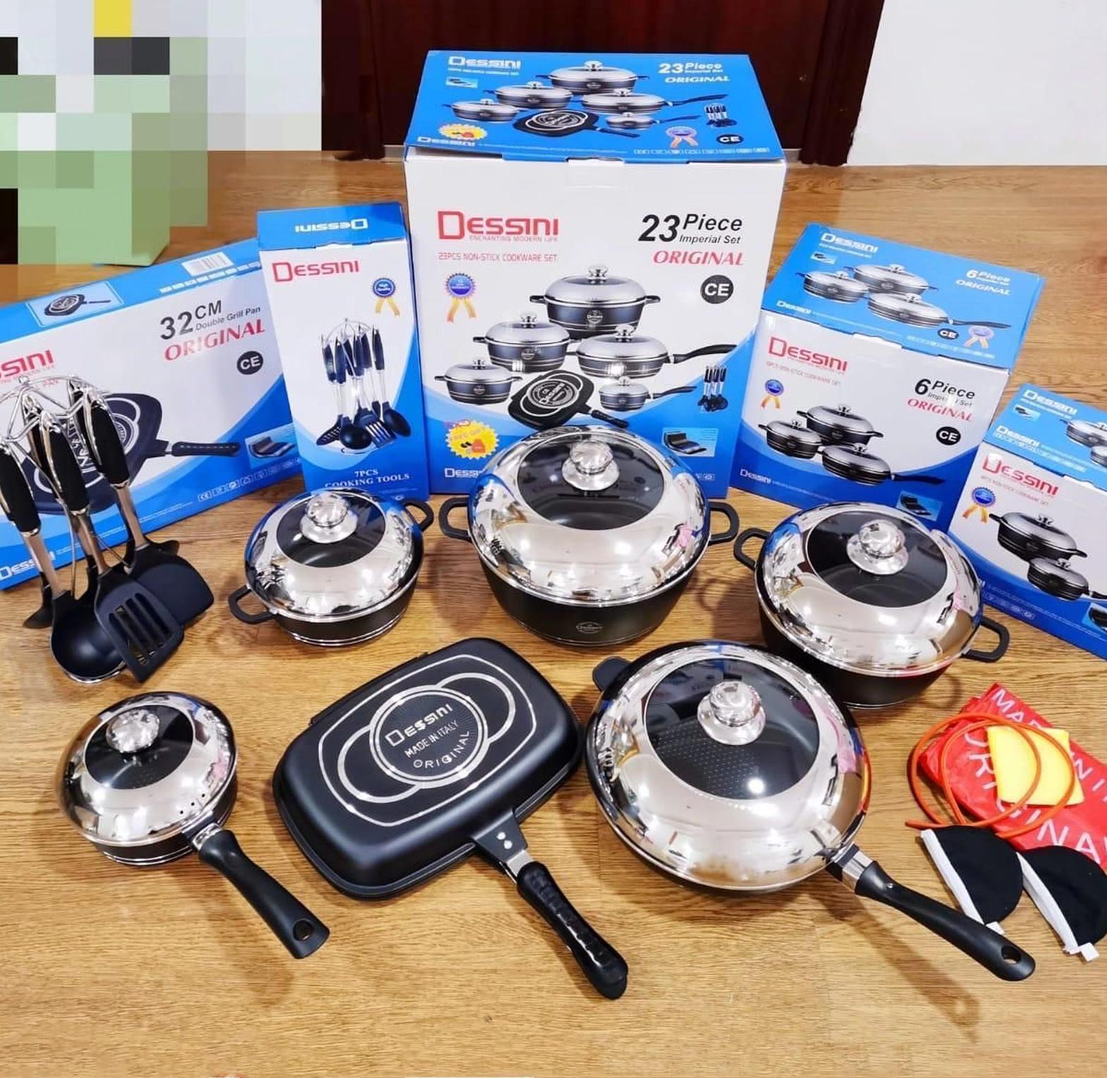 Dessini Non-Stick Cooking Pots - 23 Pieces - Good Quality and DurableCookware Set 23 pcs Dessini Imperial Non-Stick Die-Cast AluminiumSimple set but excellent performance with this Cookware Set 23 pcs Dessini Imperial Non Stick Die-Cast Aluminium. you definitely need 23 pcs set of Dessini Cookware for your kitchen!Specification:Material : Die Cast Aluminum Color: BlackSet includes:20cm Casserole24cm Casserole28cm Casserole32cm Casserole28cm Shallow Soup Pan Features: Eco-Friendly , healthy and easy for clean High class non-stick performance anti scratch Fashionable type suit for all kitchens and family Ceramic or Nonstick interior coating Order it online today though Vicmer Store from and have it delivered to your doorstep.