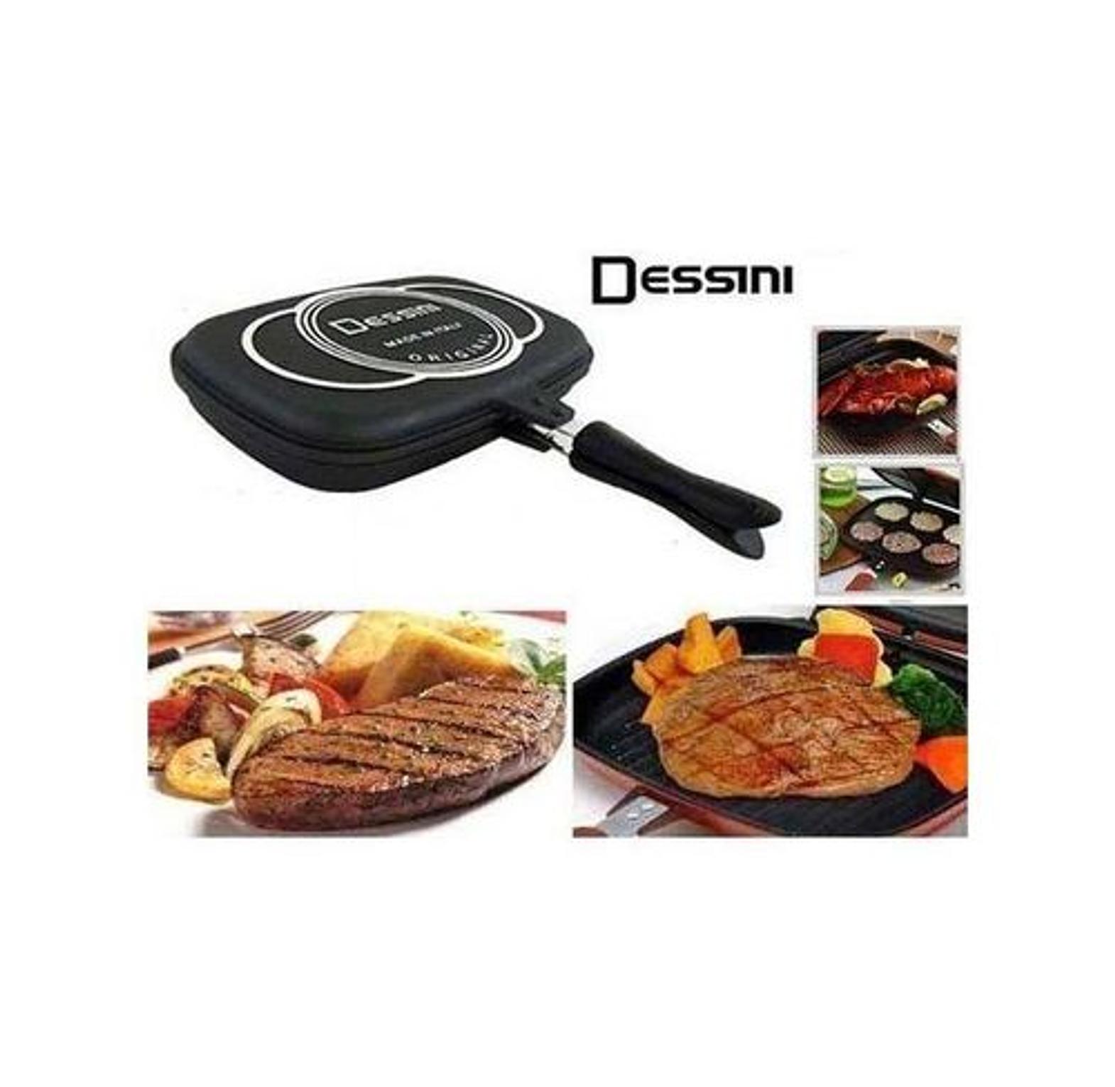Craving for perfectly grilled, but tender in the inside meat dishes? You do not have to pay five-star prices for those meals if you have the right kitchenware. Turn yourself into a master griler with the Dessini Kitchen Double Grill Pan. This useful pan is conveniently double-sided and is made of super-conductive die-cast aluminum that is highly durable, delivering you only the best in cooking performance. Impress your friends and family with perfectly grilled meat dishes and meals with the help of the Dessini Kitchen Double Grill Pan. Place your order for this amazing product from Jumia Kenya and have it delivered to your doorstep at an amazing price This latest new design double sided grill pan is a must have cookwarefor your kitchen, the double sided pan with the silicon sealing on the edge and magnetic locking mechanism will create a pressure effect while cooking, locking in the heat and pressure to cook the food more quickly and maintaining it original taste