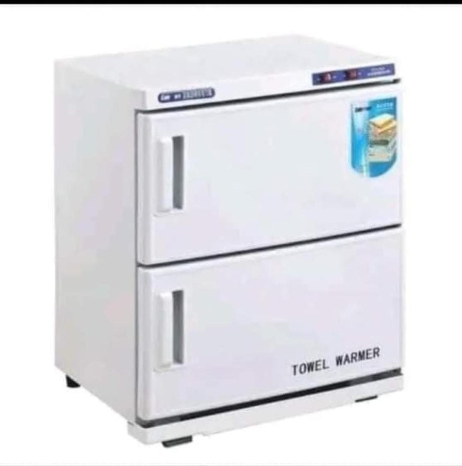 This appliance is designed for use in beauty salons, spas, massage therapy centers, and homes to heat and sterilize towels. Functionality: It features a built-in UV sterilizer to keep towels germ-free and a heating element for warming. Design: The unit has a metal or high-quality material cabinet with two cool-touch composite doors, integrated handles, and magnetic latches. Features: It includes an aluminum inner chamber for efficient heat conduction, a micro-computer for temperature control, and removable stainless steel racks and drip trays for easy cleaning and maintenance.