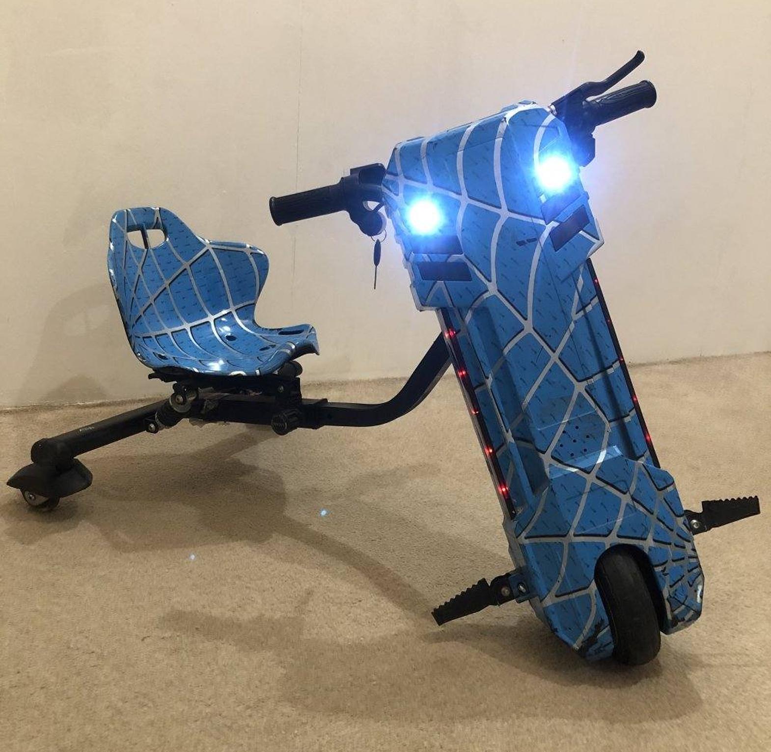 It is a three-wheeled electric vehicle designed for drifting and spinning, combining the excitement of drifting with the stability of a tricycle. It typically features a front handlebar for steering, a seat, and a powerful electric motor. The rear wheels are often designed for 360-degree rotation to facilitate drifting.