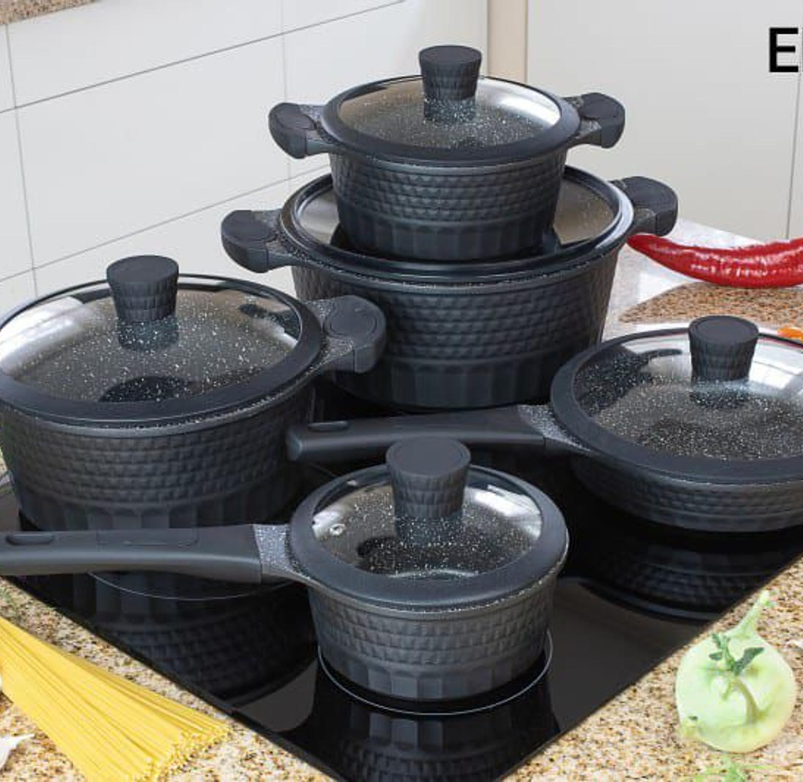 10 PCs Die cast granite cookware with lids. Cooks food faster. Made of heavy granite material retaining heat for fresh meal. Durable material used. It is made of elegant and adorable design. Durable Die Cast granite cooking pots provides long lasting superior Non-stick performance and has different sizes for different cooking needs hence you can cook different delicacies. It also has glass lids makes viewing food easy from start to finish. It is both a healthy and an Eco friendly way to cook, suitable for home and can be used for long time. Furthermore it spreads heat evenly and is energy efficient, and makes it easier to regulate heat so the food does not burn and stick. Upgrade your cooking experience by placing your order on VICMER STORE and have it delivered right at your doorstep or preferred pick up station.