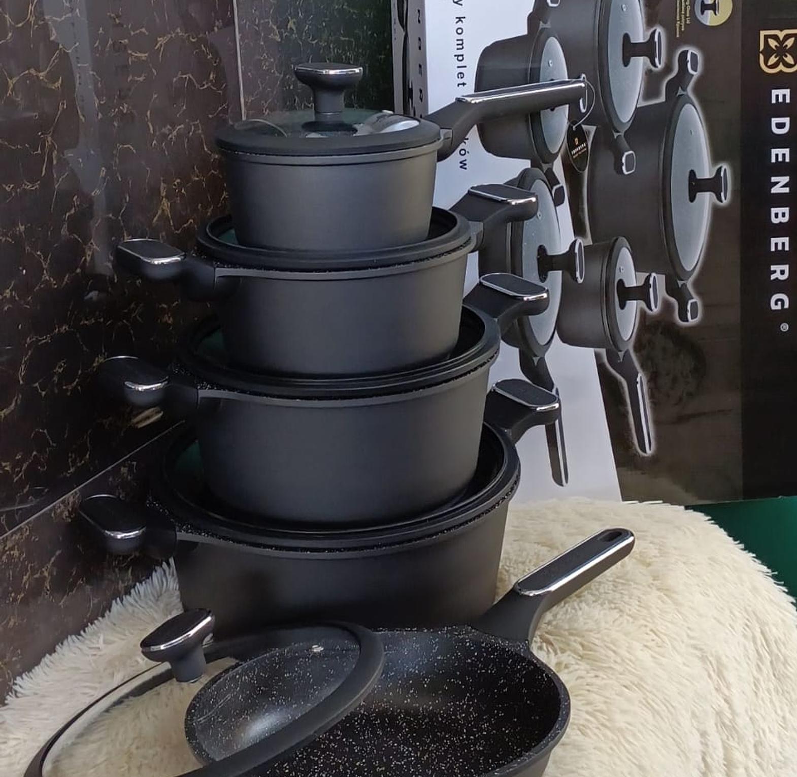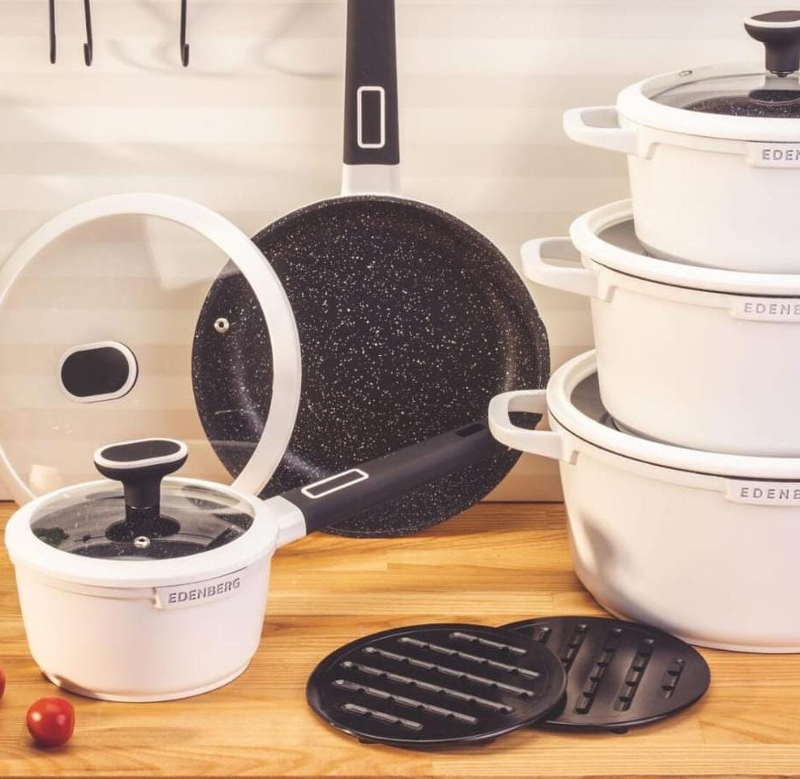 Edenberg EB-5612 15 pieces Cookware Set is an amazing set made from scratch-free material that is easy to clean. Made of high-quality material, pressed aluminum coating, ceramic-marbled coat, non-stick coating, PFOA free. The cooking pots are light in weight design provides excellent heat conductivity and a protective layer that makes them unreactive. Edenberg EB-5612 15 pieces Luxury forged Marble Cookware Set makes cooking reliable and is done using less oil for delicious and healthy meals. The pots have glass lids with wooden handles that are attractive. Edenberg EB-5612 15 pieces Luxury forged Marble Cookware Set provides long-lasting superior non-stick performance and has different sizes for different cooking needs hence you can cook different delicacies. Edenberg EB-5612 15 pieces Luxury forged Marble Cookware Set is light and easy to maintain with a protective layer added to make it less reactive and more scratch-resistant. Spreads heat evenly and is energy efficient, and makes it easier to regulate heat so the food does not burn and stick The set includes Frying pan of 24x5 cm Frying pan 28x5.5cm Saucepan with lid 20x10 cm Saucepan with lid 24x12 cm Saucepan with lid 28x12.5 cm Saucepan with pouring spout with lid 16x8.5 cm. Available on Rikeys at an amazing price. Place your order today of the Edenberg EB-5612 15 pieces Luxury forged Marble Cookware Set and have it delivered to you