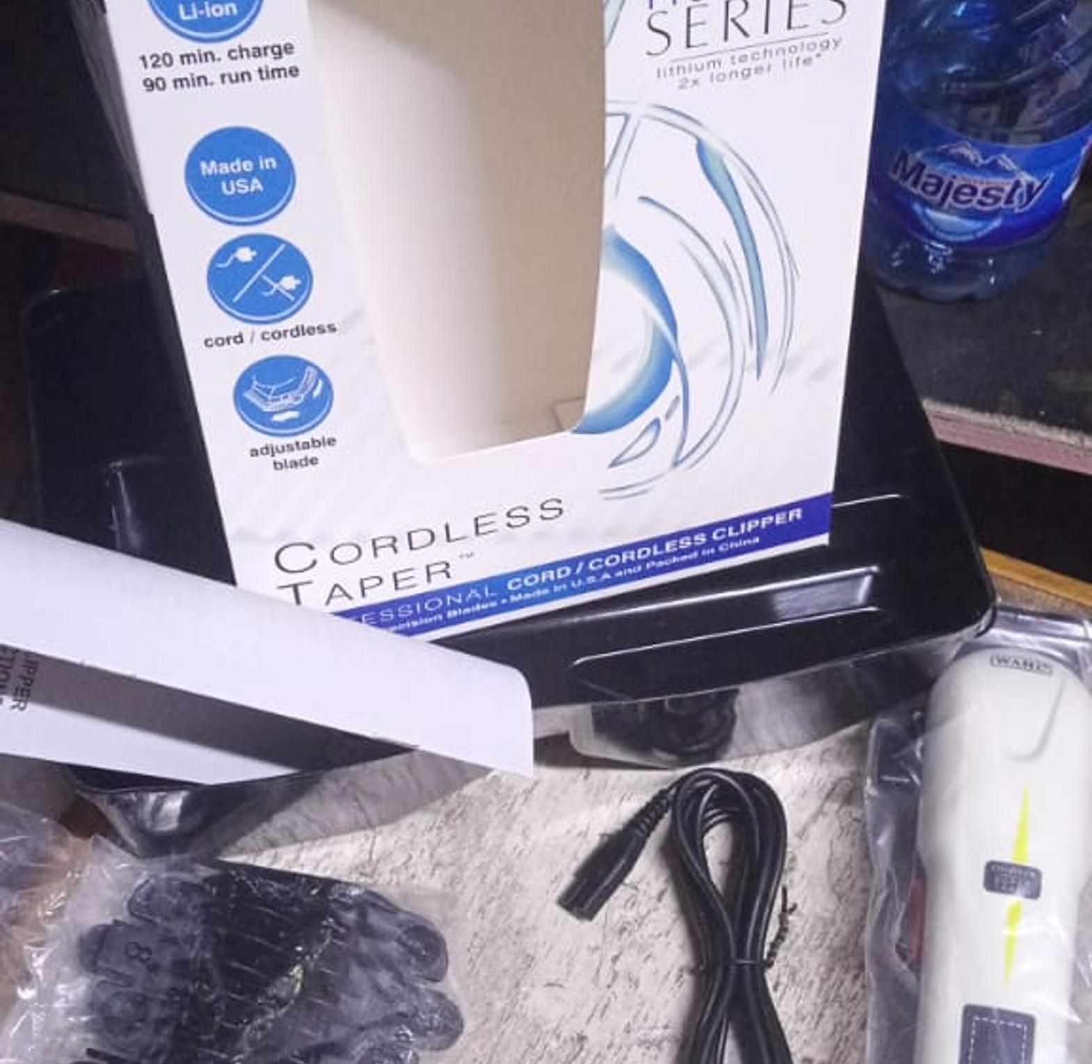 Name: Wahl Professional Cordless Super Taper Pro Lithium Clipper (also known as Wahl Cordless Super Taper or Wahl Professional Super Taper Cord/Cordless Pro Lithium Clipper). Power Source: Cord/cordless operation with a Lithium-Ion battery. Battery Life & Charging: 90 minutes of cordless run time. 120 minutes full charge time. Can be used while charging.