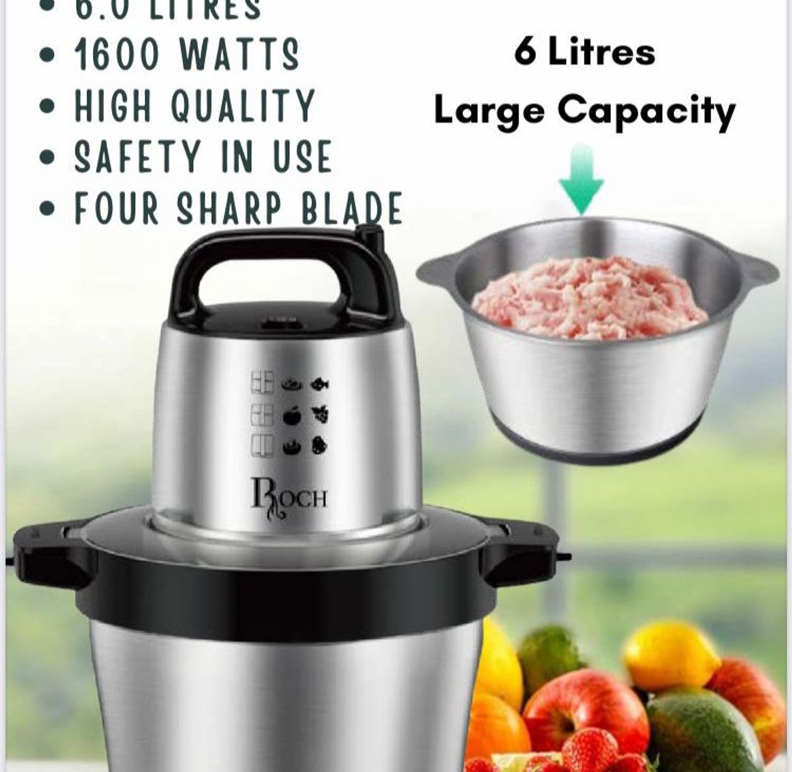 Electric Slicer.Roch 6ltrs Chopper has four sharp blades safety in use high quality. Recommended For Every Home Long Lasting