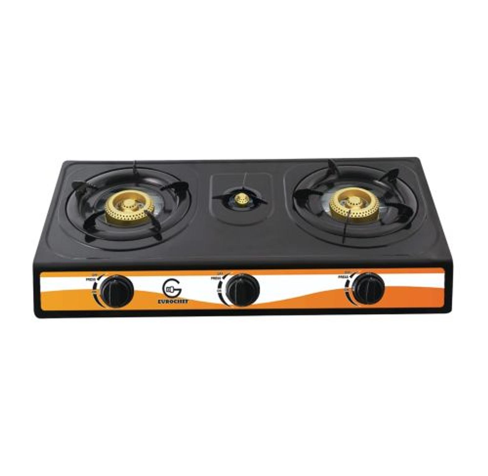 3 Burner Gas Stove: Equipped with a powerful double burner for quick and even heating. Burner Cap: Honeycomb Straight-Hole Design Burner Size: Φ95MM (L) and Φ95MM (R) Rated Heat Flow: 3.4kW (each burner) Super Swirl Burner for 20% gas saving Black Porcelain Enamel Grill, high temperature resistant Energy Efficiency: Provides even heat distribution and emits less wasted heat compared to electric stoves. Auto-ignition feature reduces energy waste. High-Standard Configuration: Tempered Glass Surface: High-temperature resistance, no deformation, and easy cleaning. Auto Ignition with piezo: Convenient ignition without matches or lighters. Whirlwind burner for increased durability and efficiency. Stain-resistant and easy to maintain stainless steel surface. Uniform heating for better cooking results. High-temperature resistant black porcelain enamel grill. Safety and Durability: Strong firepower with quick ignition and flame extinguishing. Thicker furnace head and high-temperature resistant glass surface. Four-corner furnace frame keeps the flame away from the knob and prevents slipping. Enhanced safety features for better protection during use. Additional Benefits: Promotes a green, energy-saving lifestyle. Easy to clean and maintain, ensuring a polished look. Ideal for both home and outdoor cooking.