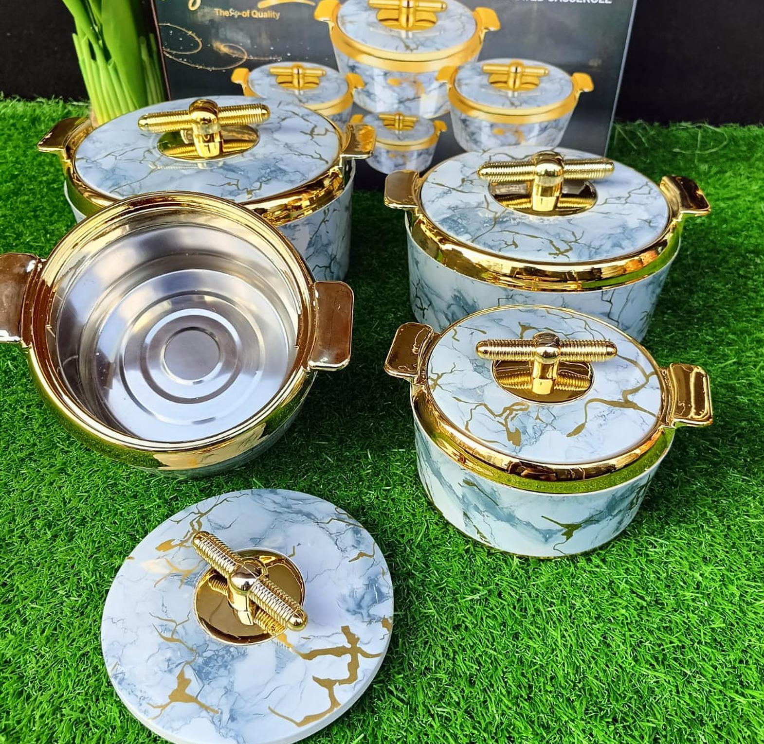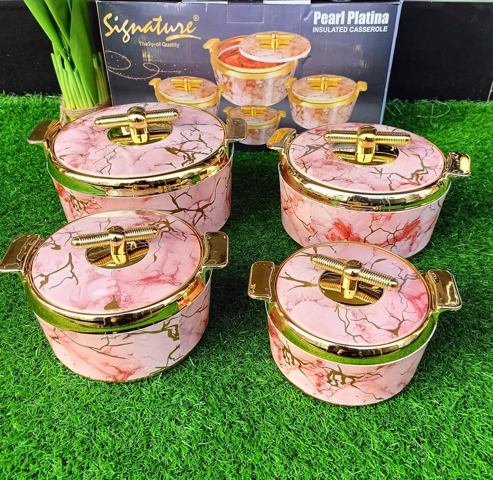 4-piece insulated hot pot set with stainless steel interior, durable plastic body, and heat retention up to 6 hours.