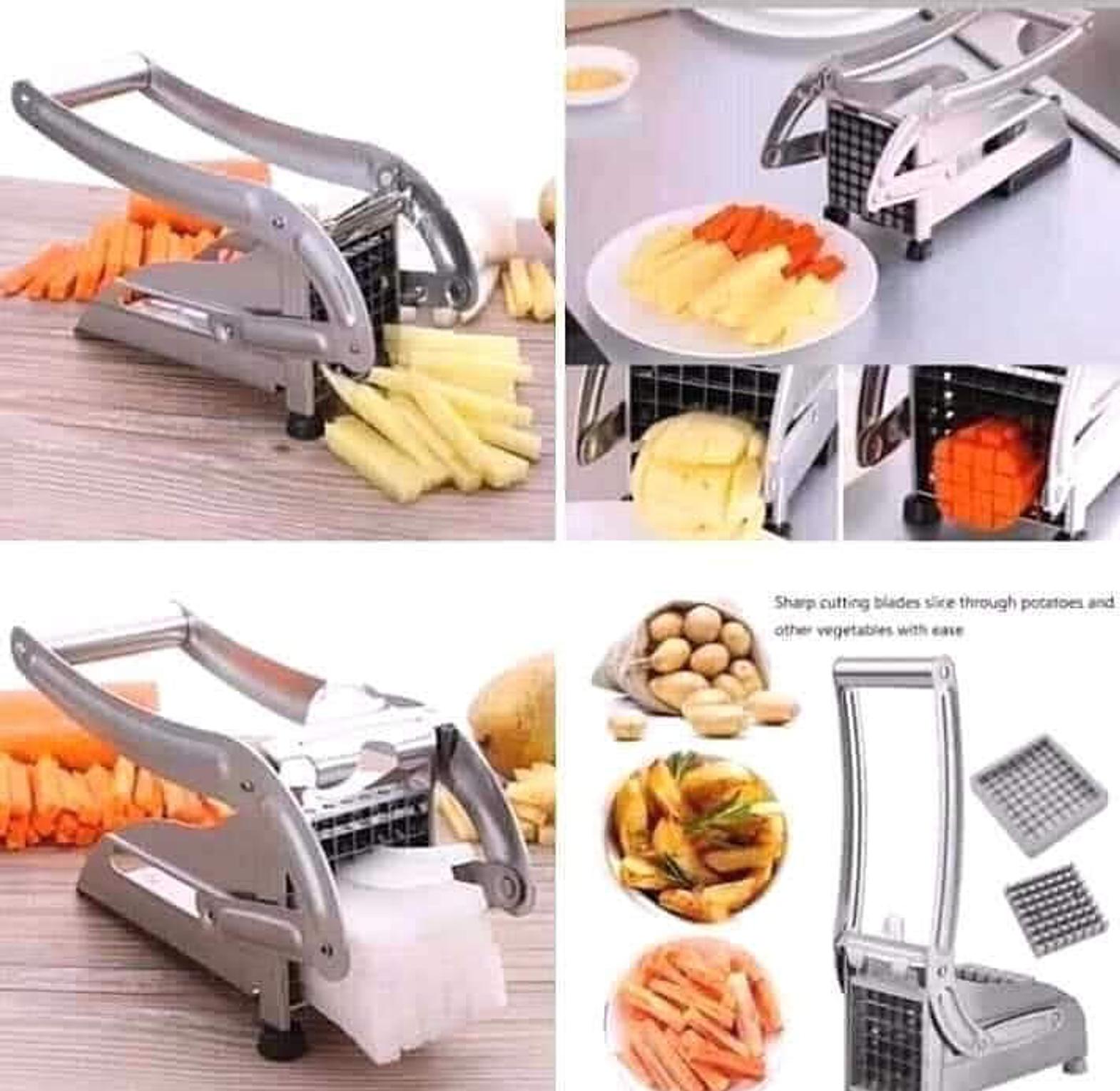 Prepare lovely, straight chips in seconds with the Master Class Stainless Steel French fry cutter. With its easy lever arm action, it only takes a gentle push to cut a potato into 36 perfectly sized chips . It’s so much easier than using a knife. Tips: 1. It is very important to suction the cutter and make sure no movement during using 2. The fry length is 3-1/2 inches at most, large potatoes should be cut the ends off or cut it in half and then place the flat side downin the cutting bay 3. If need to make sweet potato fries, please microwave the sweet potato for 2 minutes or cook them slightly to soften it up 4. Blade maintenance: the blade aids cleaning after cutting 2or 3pcs potatoes and keep the blade dry Easy to use: 1. Place the cutter on a flat work surface, and then push the handle down 2. Align the corresponding pusher grid on the stainless steel plate and turn the knob to the left to lock into place 3. Cut the ends of the potato to make it easily balances on the cutting board 4. Place a potato inside the main compartment, push down the lever/handle, and you'll get your perfect shaped sticks. ( please do not overload the chute which causes it to block. Only load in slender potatoes or simply cut hefty tubers in two.)