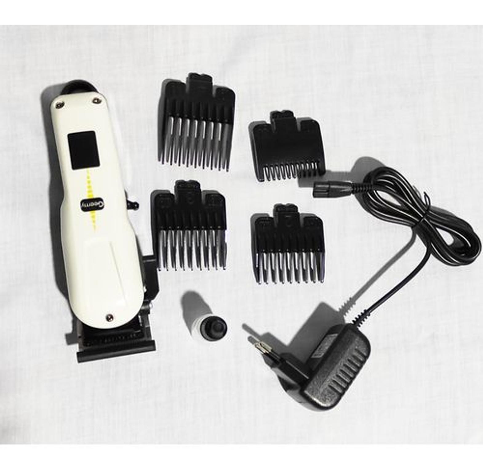 High performance motor with stainless steel blade. Good quality rechargeable hair trimmer/hair clipper with LCD display of battery indicator Hair clipper is intended for professional use. It features high precision zero-overlap blades for superior speed and a convenient variable thumb lever for adjusting the taper and texture without changing blade. Designed for smooth,quick,and precise performance on all types of hair. It contains: 3,6,10,13 mm, spacing comb, oil bottle, cleaning brush and charging adaptor. .•Stainless steel blade •Taper control cutting lenghts •LCD battery capacity display •3,6,10,13mm spacing comb •2000mAh lithium-ion battery •4-5 hours cordless usage •3-4 hours charging time •Safety power supply cord