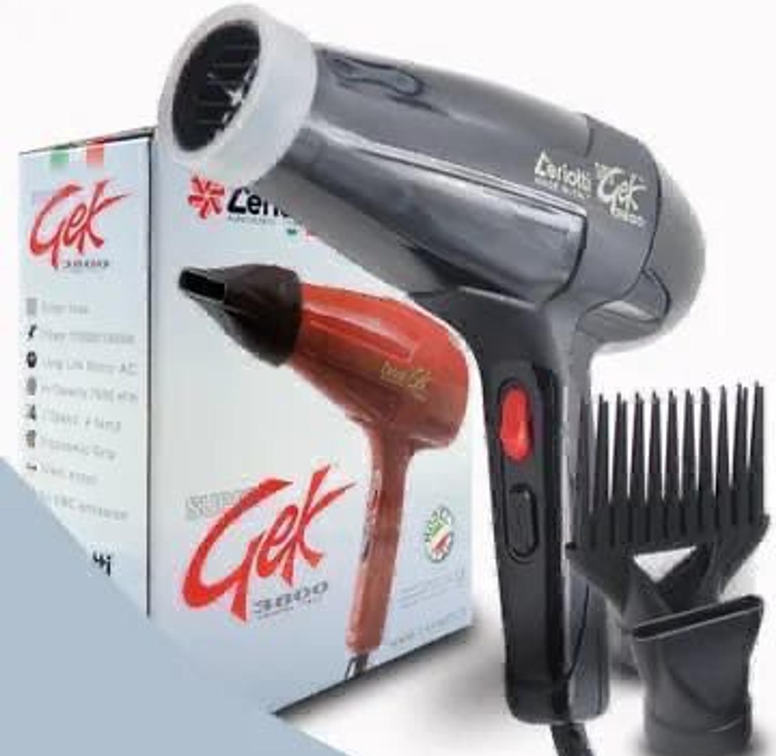 Gek Super 3800 Blow Dry Hair Dryer 2 Speeds and 3 Heat Settings for Effortless Salon Hairstyles 3 Heat Setting (Cold/Warm/Hot) 2 Air Speed Setting (Low/High) Press the cold air button and keep your favorite look all day. Detachable Rear Filter for Easy Cleaning Double safty removable filter, prevent hair get sucked into the blow dryer and to facilitate the timely clean up. Professional cord with Cable tie and Hang loop. Attachments Tools (Concentrator and Hair Diffuser) Concentrator and Diffuser attachments for fast drying and precision styling. Suitable for all hair types: long, short, curly, straight, thin and thick. Ideal hair styling tool for both men and women