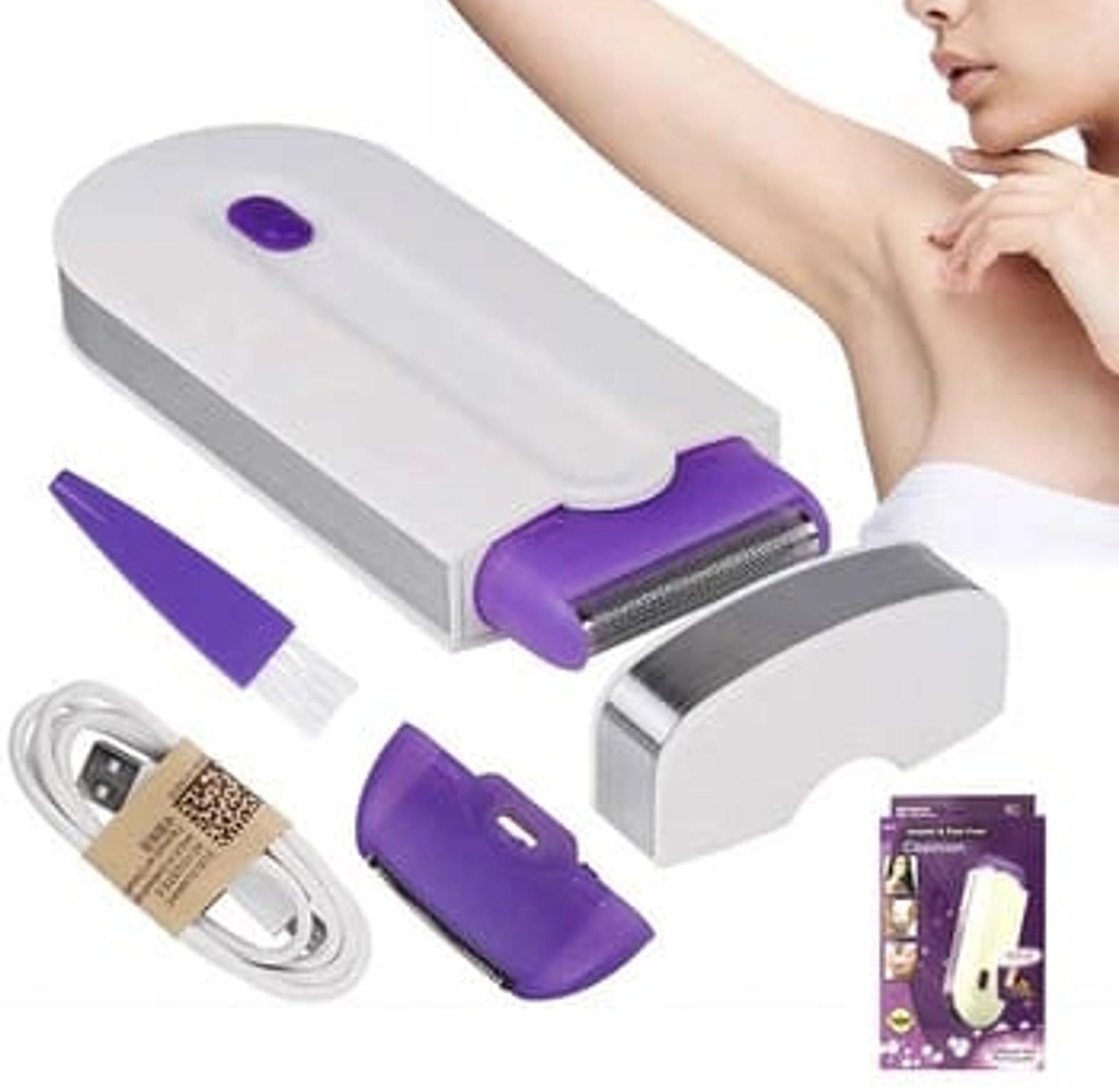 This compact and portable hair removal tool is designed for effective and painless hair removal on various body areas, including legs, underarms, bikini line, and facial areas. It utilizes a floating net system to remove hair without causing stubble, pain, or redness, aiming for a smooth finish.