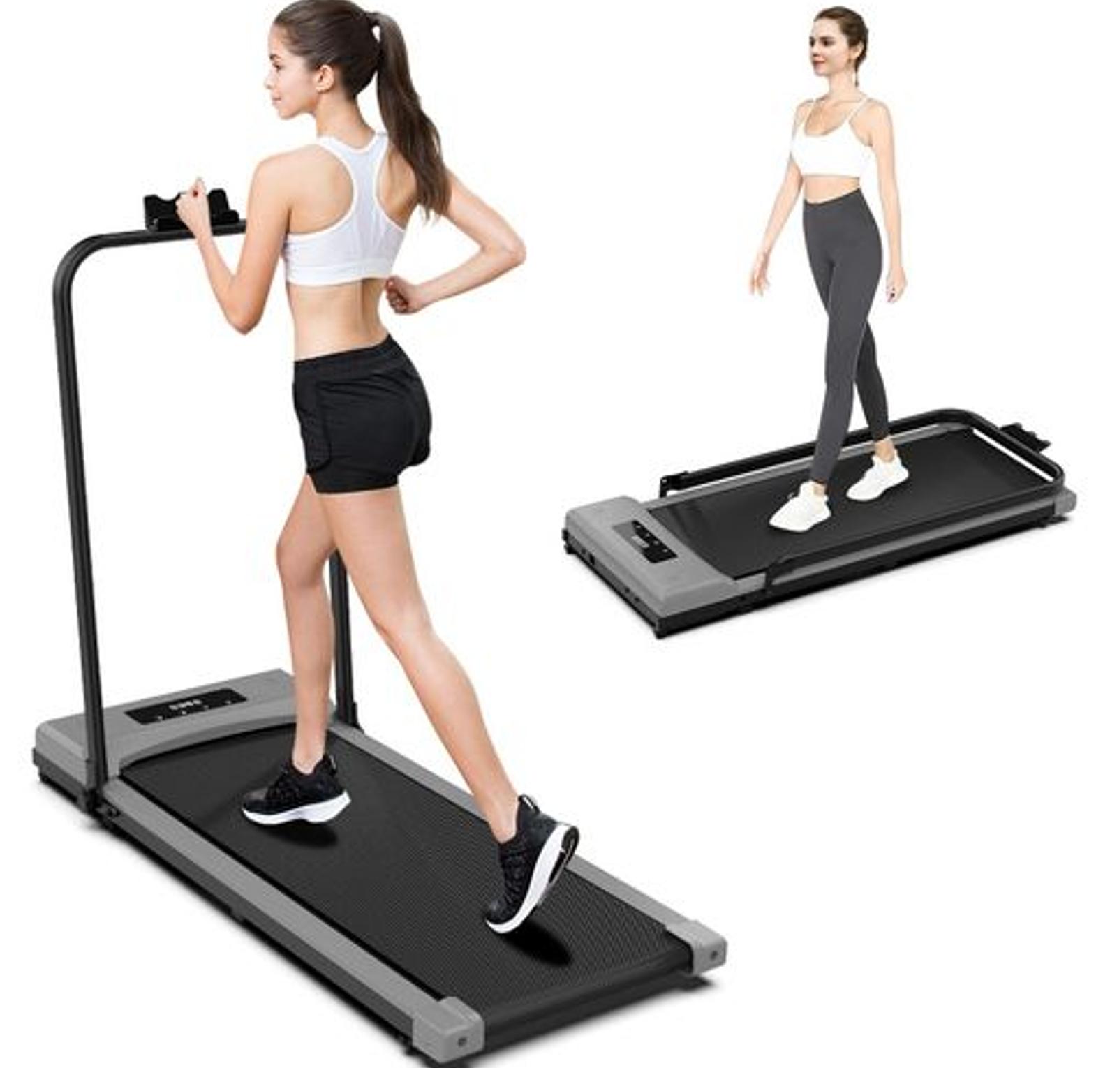 Experience the ultimate convenience and flexibility with our 2 in 1 Folding Treadmill. Whether you're looking to engage in intense running sessions or enjoy a leisurely walk, this treadmill has got you covered. With its easy folding mechanism, this treadmill can be quickly and effortlessly folded up, allowing you to store it conveniently in small spaces or move it around with ease. The built-in wheels ensure smooth transportation, making it a perfect choice for both home and office use. Featuring a powerful and quiet 2.25 HP motor, this electric treadmill delivers consistent performance for your workouts. The motor operates silently, enabling you to focus on your exercise without any distractions. Take full control of your workout with the user-friendly remote control and LED display. Adjust the speed to match your fitness level and monitor your time, distance, calories burned, and heart rate, all at a glance. Built to last, this treadmill boasts a sturdy and durable construction. The robust frame ensures stability during your workouts, providing you with a safe and secure exercise experience. Elevate your fitness routine with our 2 in 1 Folding Treadmill. Enjoy the convenience of versatile exercise modes, easy folding mechanism, powerful motor, and user-friendly controls. Get ready to achieve your fitness goals from the comfort of your own home, office, or gym. Start your fitness journey today!