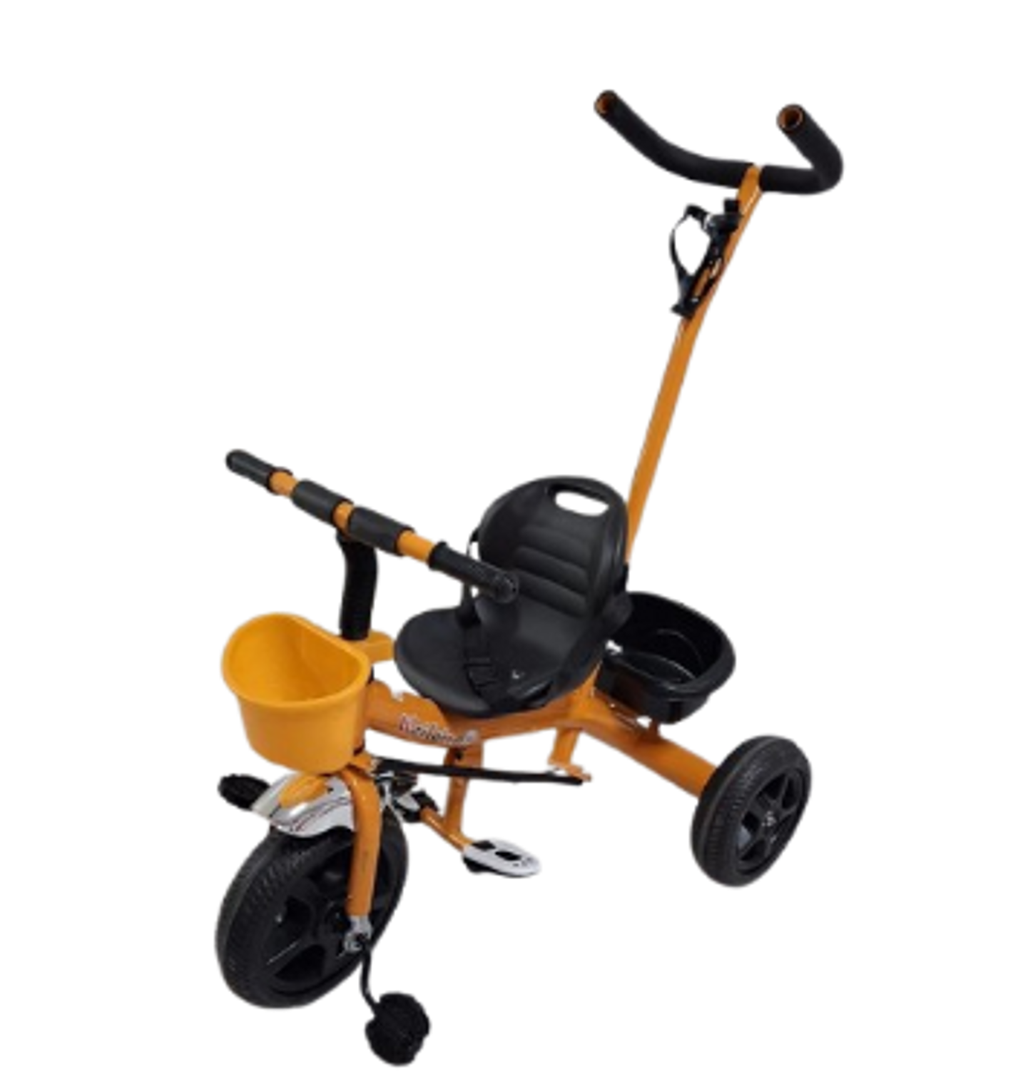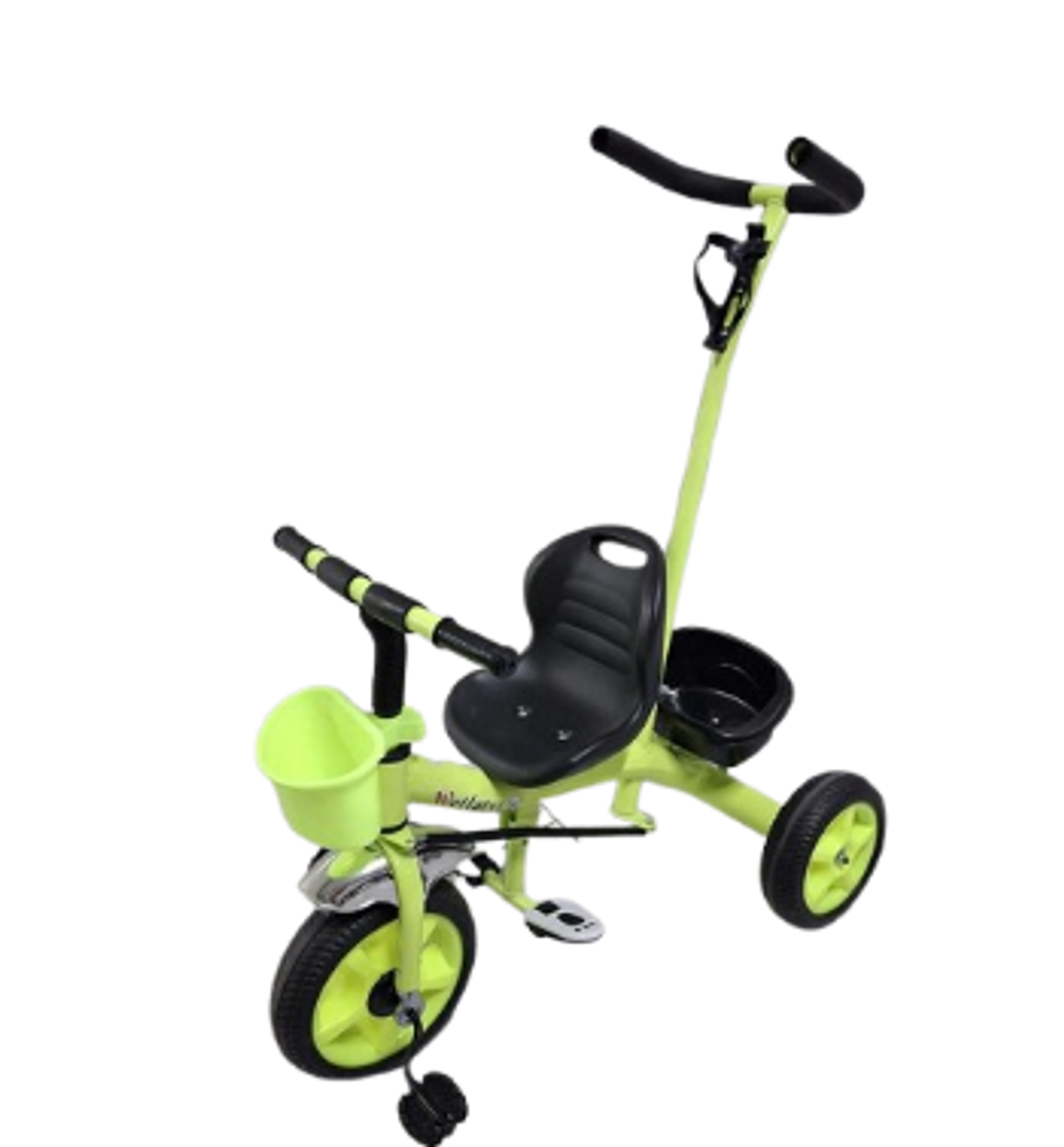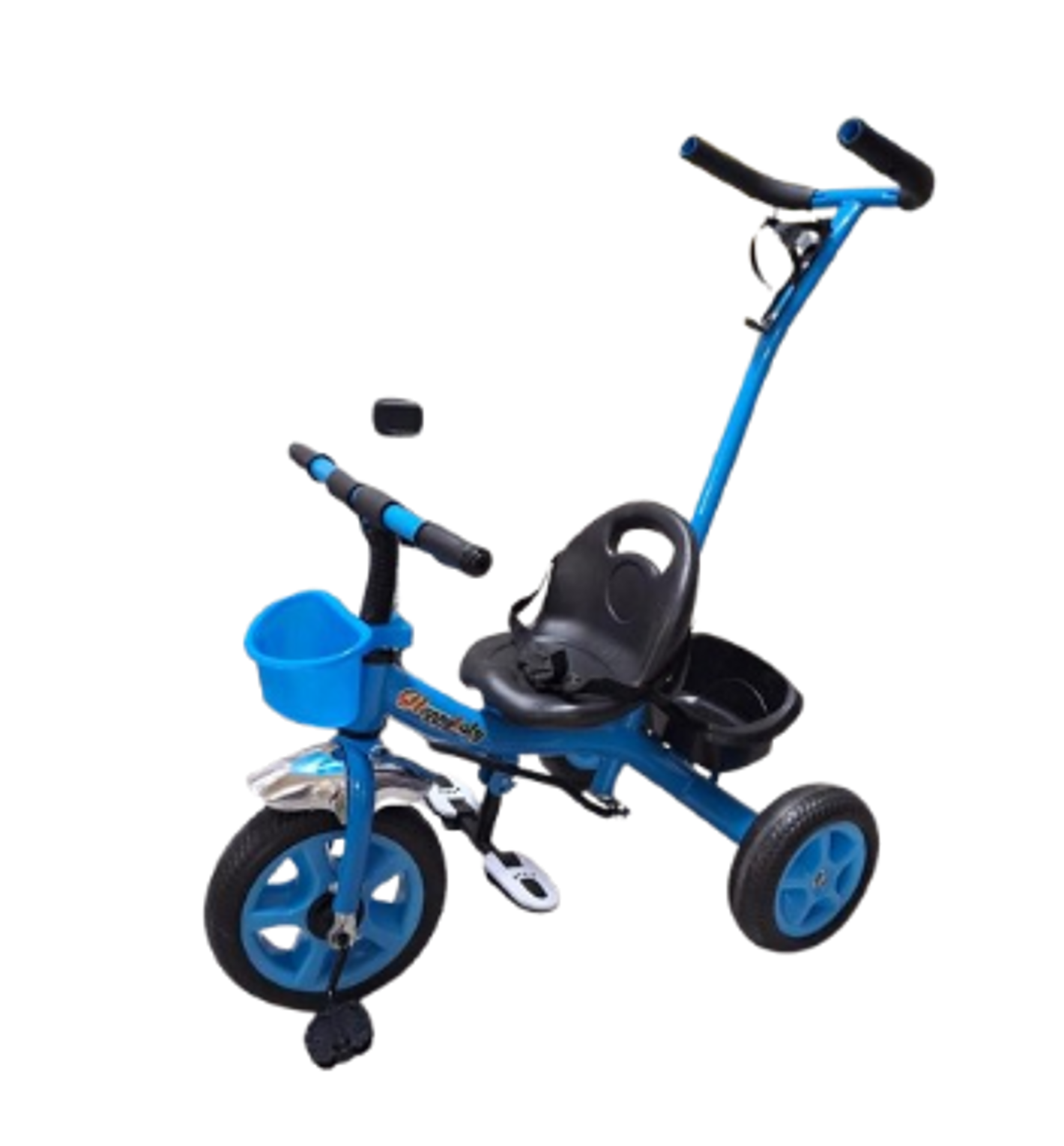 This tricycle is engineered for toddlers and young children, focusing on stability and ease of use. It features a sturdy 3-wheel design that prevents tipping, making it ideal for beginner riders. For parents, it includes a tall, detachable push handle that allows for easy steering and speed control during walks. The bike is equipped with dual storage—a small front basket for quick-access items and a larger rear basket for toys or snacks. The seat is ergonomically shaped with a supportive backrest to ensure the child remains comfortable and secure while pedaling.