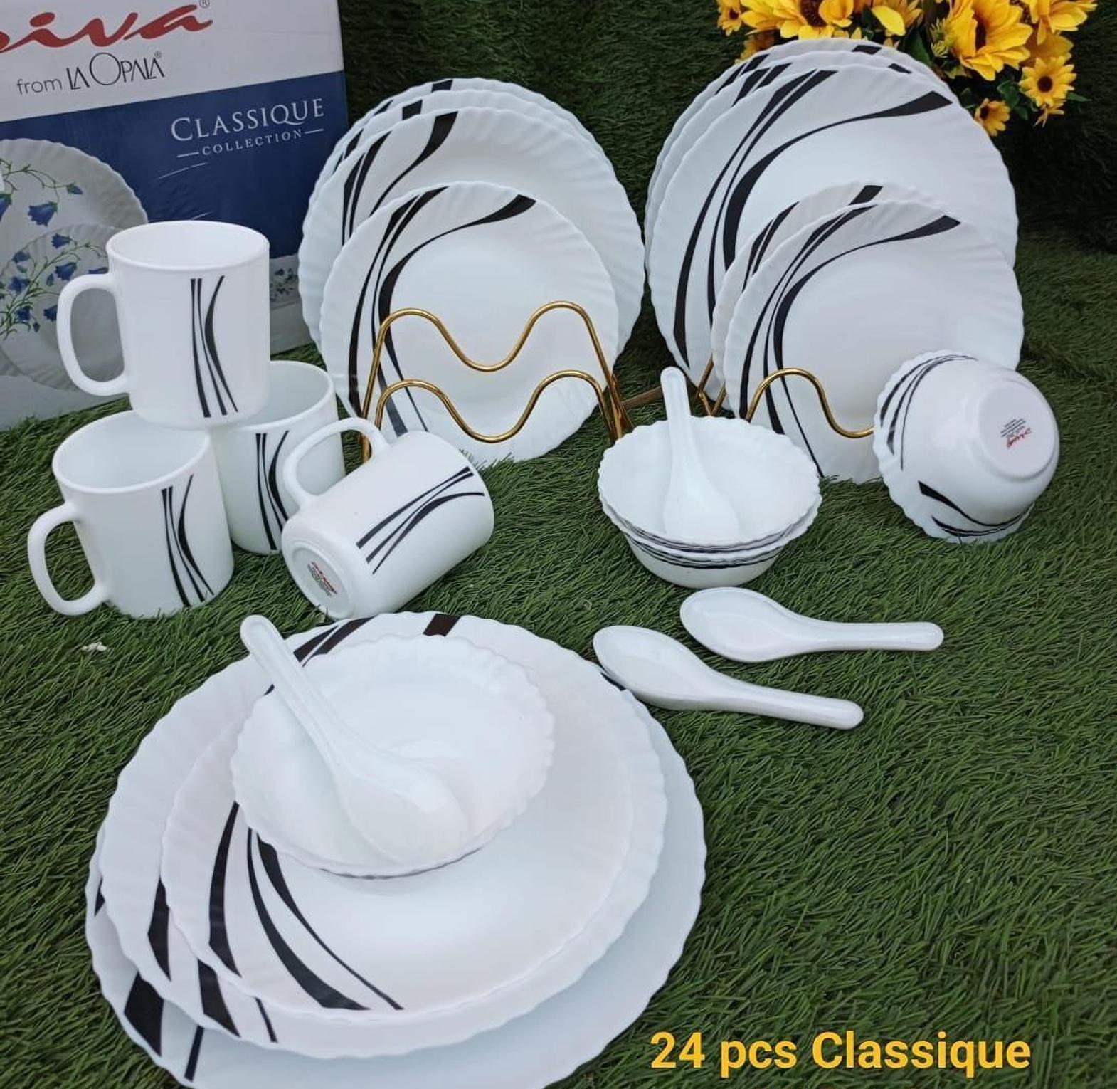24 Pieces Original ceramic dinner set Dinner set is a great item you need for your kitchen accessories. Buy this very beautiful and luxurious dinner set and you will enjoy your meal. This set is very durable provided you handle with care. Dinner set is a great item you need for your kitchen accessories. Buy this very beautiful and luxurious dinner set and you will enjoy your meal. This set is very durable provided you handle with care. 24 Pcs ceramic dinner set6 PCs side plates6 PCs dinner plates6 PCs soup bowls 6 PCs mugs
