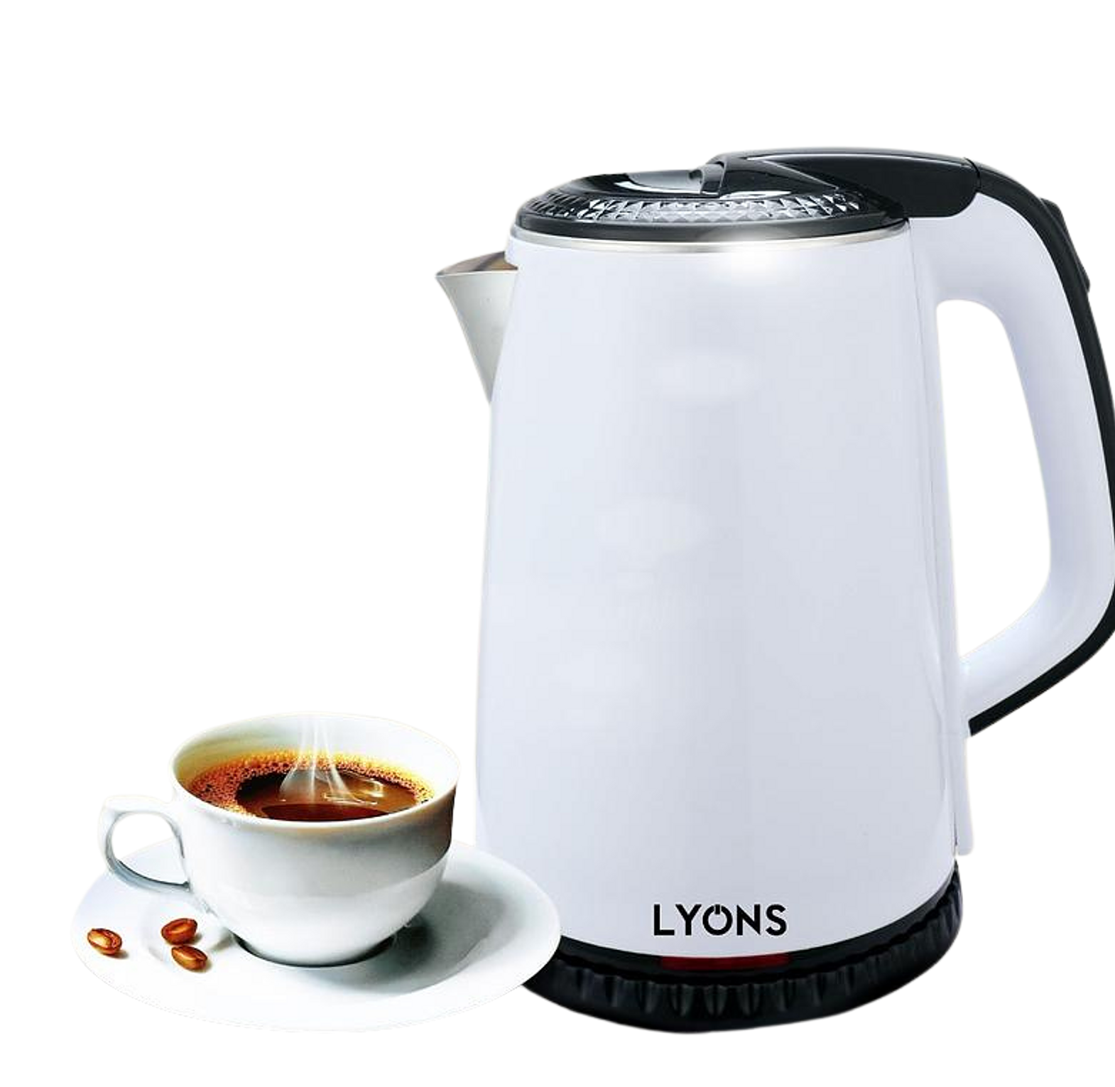 The Ailyons 2.2L FK-0306 Electric Kettle: efficient cordless kettle designed for quick and convenient boiling. It heats water 85% faster than a traditional stovetop kettle, making it a time-saving addition to any kitchen. Featuring a concealed stainless steel heating element, it ensures durability and even heat distribution. The automatic shut-off with boil-dry protection enhances safety, while the non-slip 360° rotary power base allows for effortless filling, pouring and serving. Its durable stainless steel body guarantees long-lasting performance, making it perfect for home or office use.