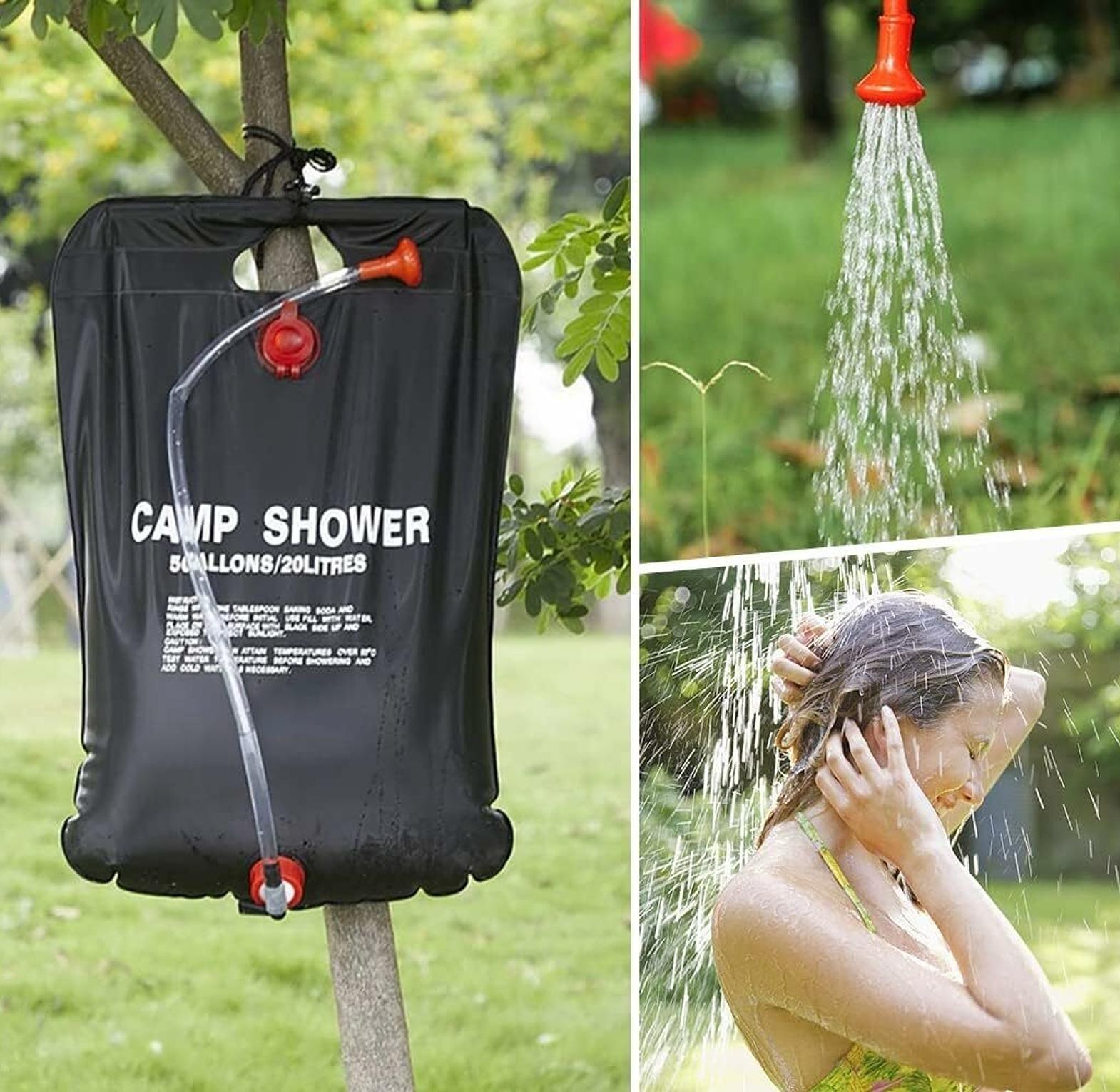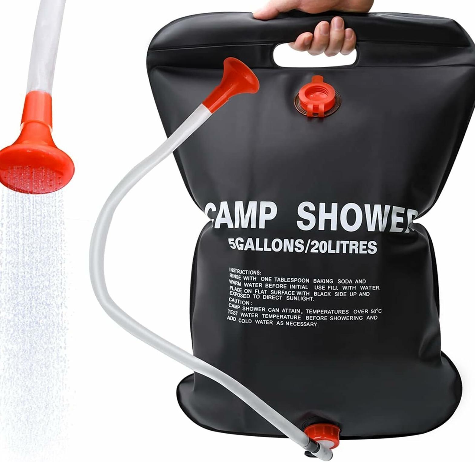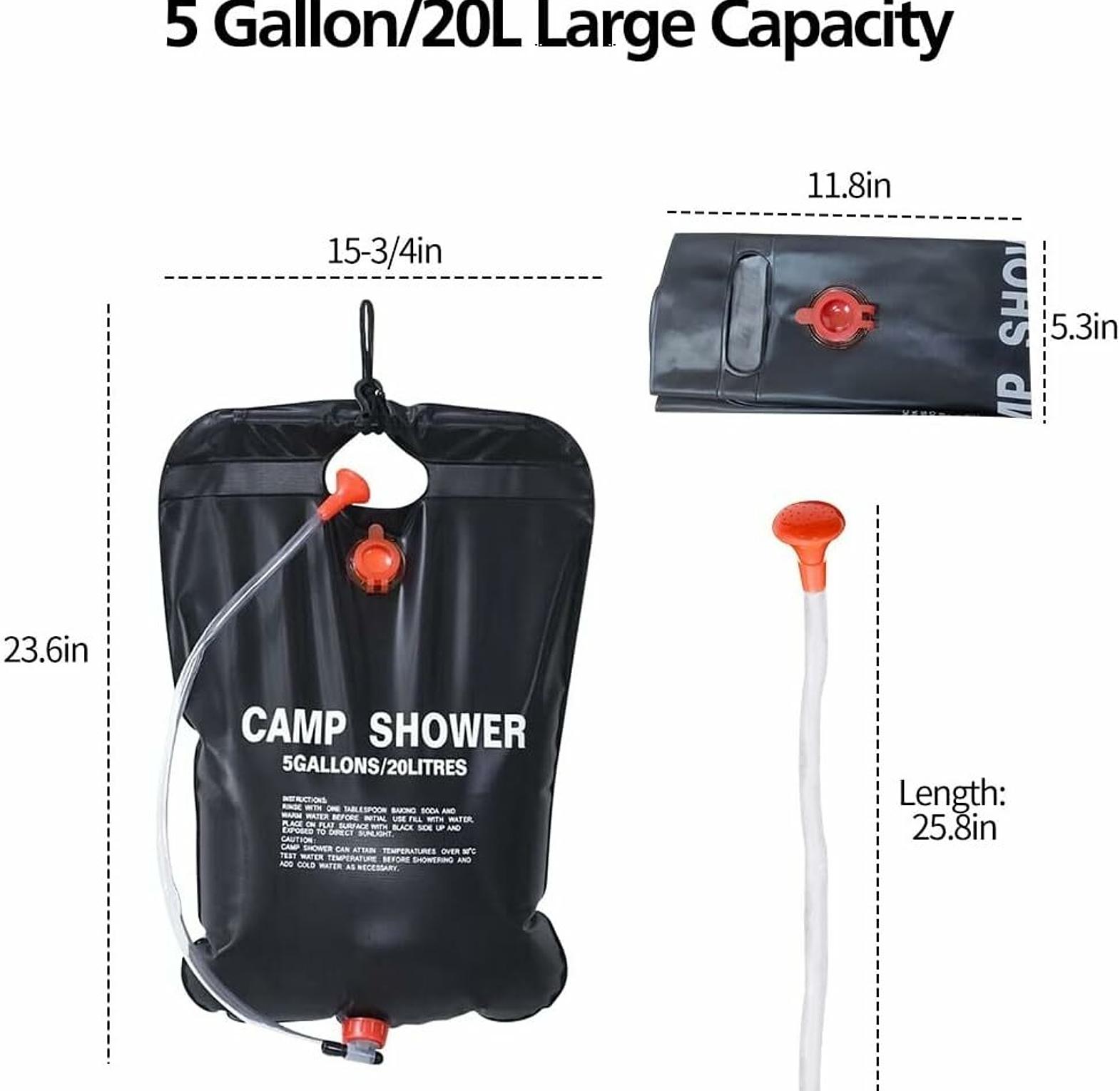This camping shower bag can store 5 gallons / 20L of water with a size of 60 * 40cm (L * W). After being filled, it can offer support of taking shower for about 8 minutes. Let you enjoy a better and refreshing shower anywhere.