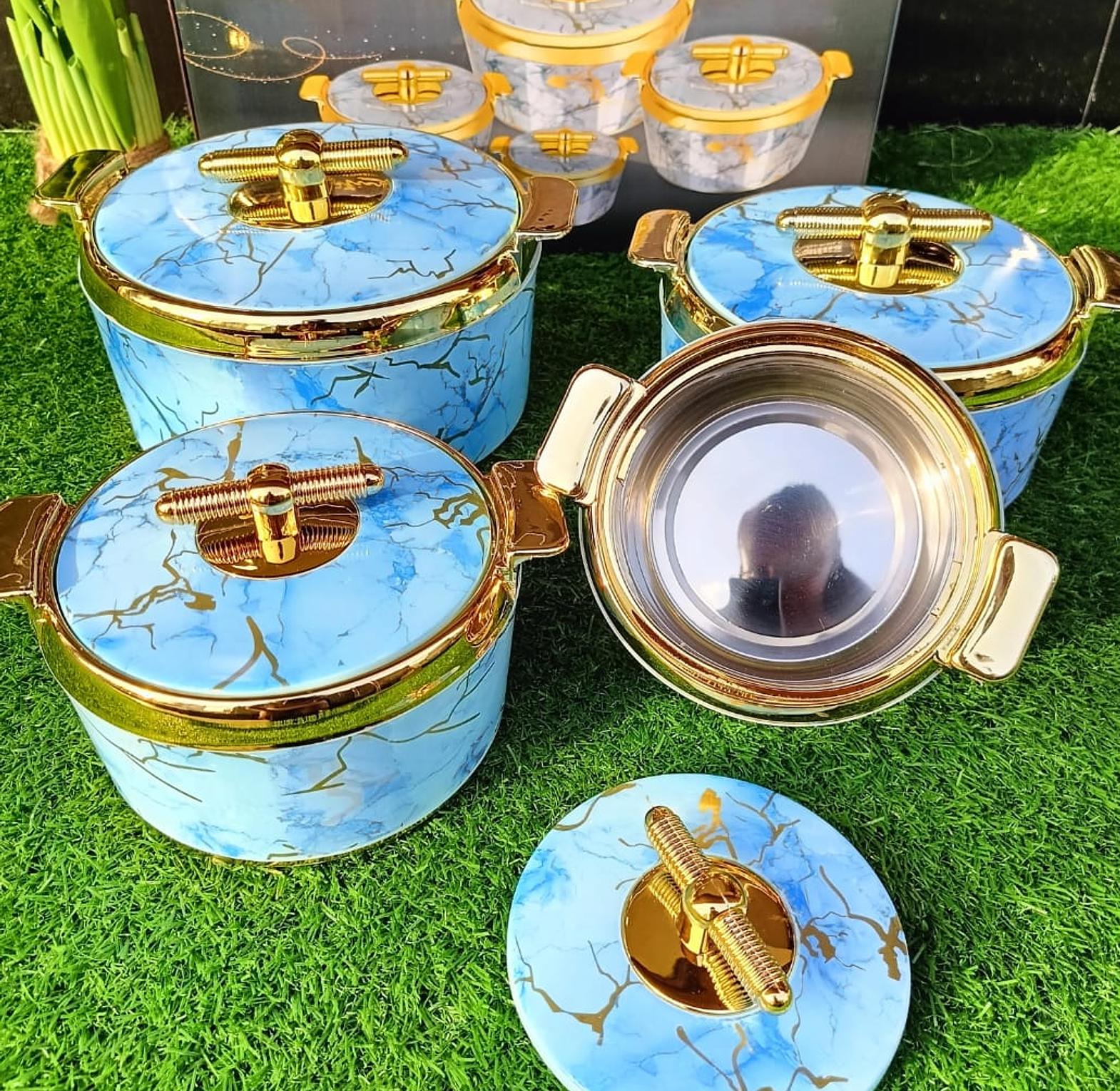 It is set of four casseroles make an ideal set of insulated food containers with stainless steel interiors, which can keep the food hot and fresh for hours at a stretch. And each casserole sports a sturdy handle, It Easy grip, Durable and break resistant, Keep the food hot and fresh, Easy to carry has a lockable cover device. capacity : 700ml/1000ml/1500ml/2500ml. The lids sport an easy twist-and-lift grip with a locking insert that makes them easy to use and handle. This set makes a valuable addition to any kitchen. It is set of four casseroles make an ideal set of insulated food containers with stainless steel interiors, which can keep the food hot and fresh for hours at a stretch. And each casserole sports a sturdy handle with Features. It Easy grip, Durable and break resistant, Keep the food hot and fresh, Easy to carry You want a set of plate different from what others have, get these quality Infinite insulated plate that can get food warm and cold for hours. Its lock is easy. It has easy grip lock to ensure your food is well covered. Your children usually go to school and you want to keep food for them to avoid warming it, these plates is the best option. You do not have to worry about them getting your food soured or your fresh stuff addled. Hey! get these set of Plate and give your dinning that good look. Do you know good Plate makes food enticing? Oh yes!! Any food served in these plates must be finished because looking it the food inside the plate makes you to go hungry the more.