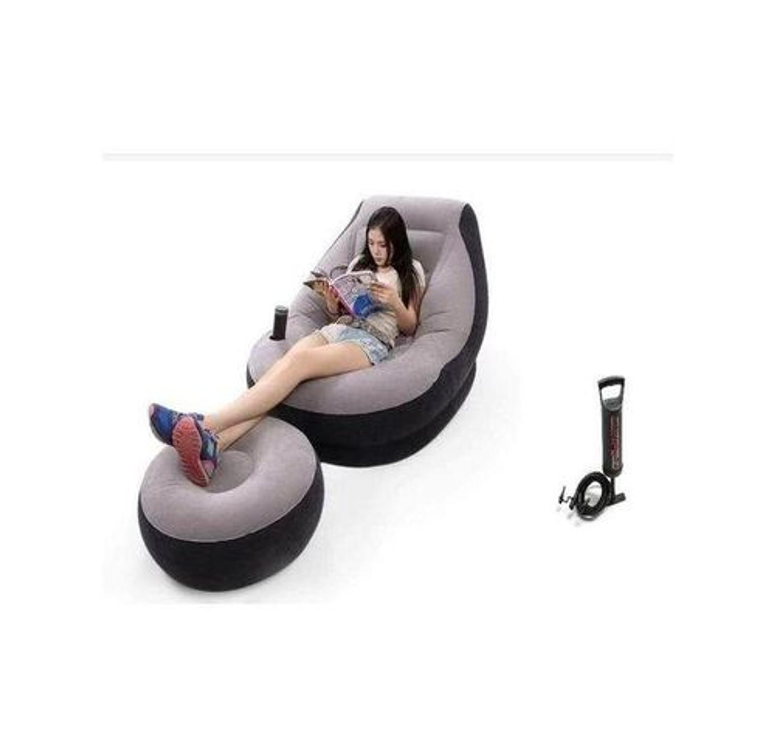 Indoor Outdoor PVC Inflatable lounge sofa set flocking lounge chair with footrest air sofa chair for adults Name: Inflatable Lounge Sofa Material: PVC Material With Electric Pressure Pump Weight: 2kg Sofa size: 116 x 98 x 83cm Stool Size: 62 x 62 x 31cm Unique and Stylish Comfortable