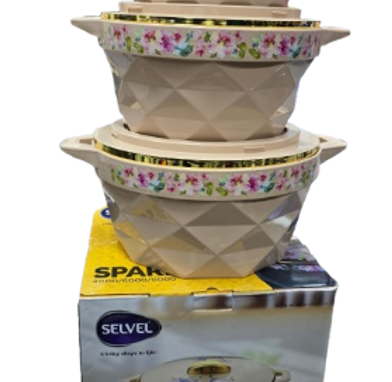 These casseroles are designed to keep food hot or cold for extended periods due to their insulated construction. They typically feature a non-magnetic stainless steel inner body for heat retention and a durable outer body, often made of virgin food-grade plastic. The design includes a twist-locking lid for secure closure and to further aid in temperature retention.