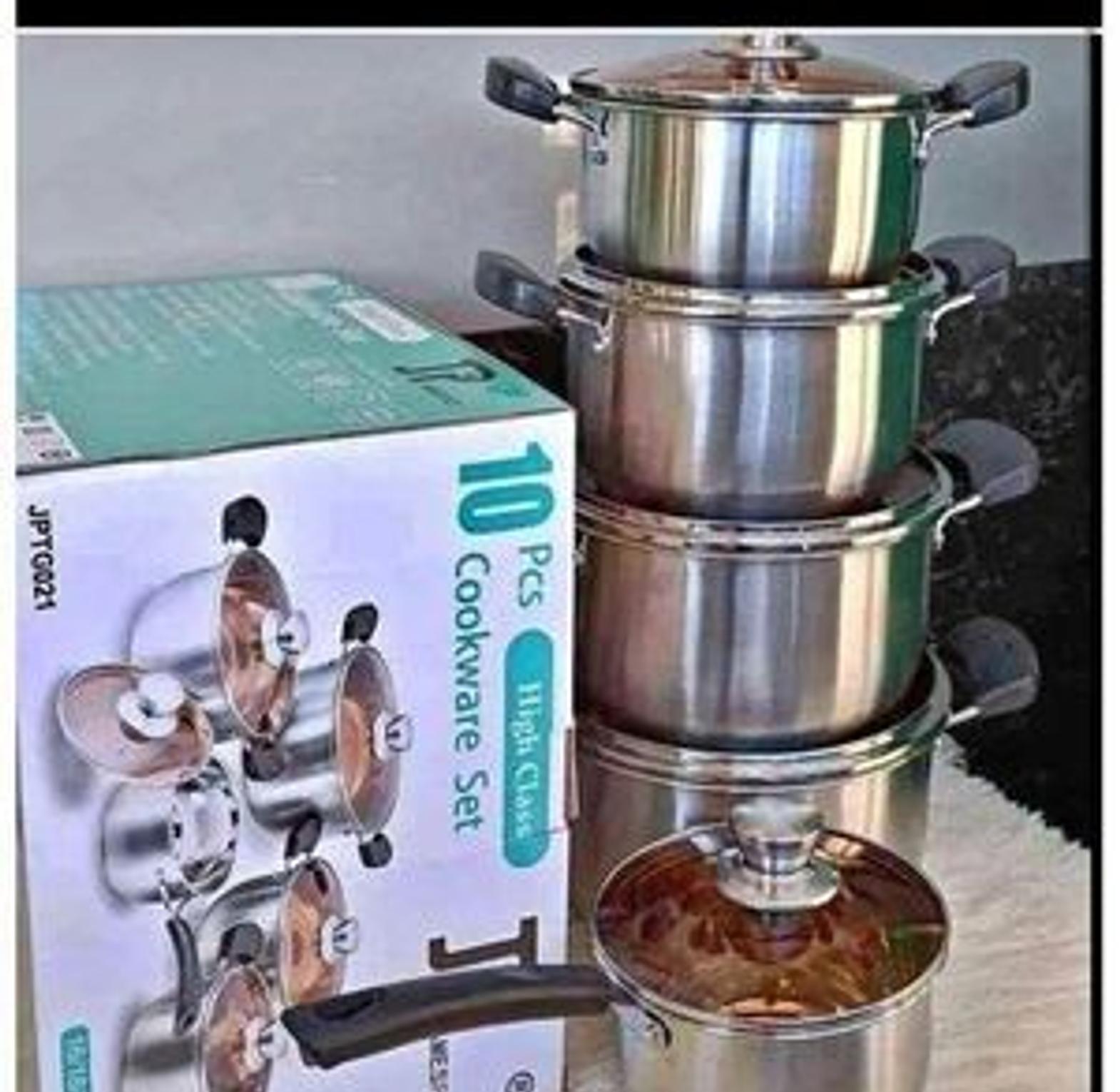 This 10 -Piece Cookware set is made of and pure aluminum encapsulated in the base for fast and even heating and optimal cooking performance. Tight-fitting covers seal in moisture and nutrients for healthier, more flavorful results, every time you cook. Solid stainless steel riveted handles stay cool on the stove top. Ideal even for gas, Electric, charcoal jiko or firewood cooking during outdoor cooking