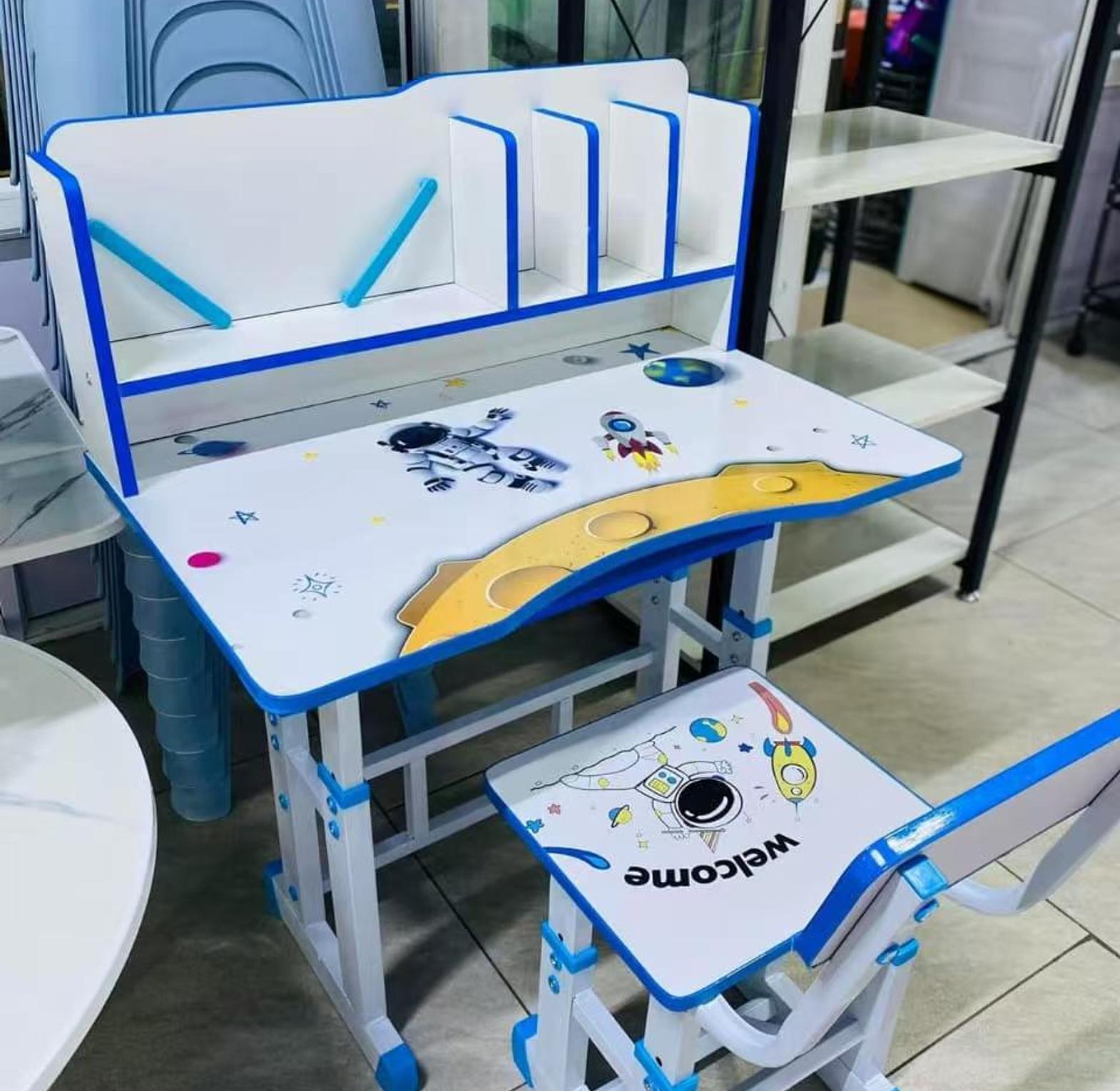 This set features a playful cartoon desktop, specifically with a space theme including astronauts and planets, designed to spark creativity in children.