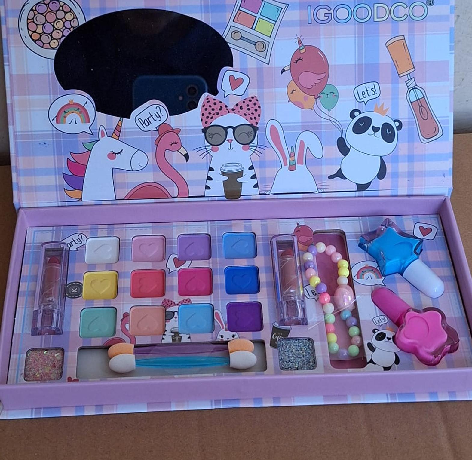 Kids Makeup Kit For Girls - Gift Toys For Girls Washable Make Up For Little Girls, Non Toxic Toddlers Cosmetic Kits, Child Play Makeup Toys Spark Their Imagination with Our Safe, Non-Toxic Makeup Kit! Designed specifically for little ones, our colorful makeup kit is the perfect way to introduce your child to the world of beauty and self-expression. With gentle, non-toxic formulas that are easy to wash off, you can let their creativity shine without worry. Imagine the joy on their face as they experiment with different shades and colors, creating their own unique looks. Our kit includes a variety of vibrant eyeshadows, lip glosses, and blushes, all crafted with child-friendly ingredients that are gentle on their delicate skin. Not only is our makeup kit safe, but it's also fun and easy to use. The child-friendly packaging and easy-to-apply formulas make it perfect for little hands to explore. Let your child's imagination run wild as they transform themselves into their favorite characters or create their own unique styles.