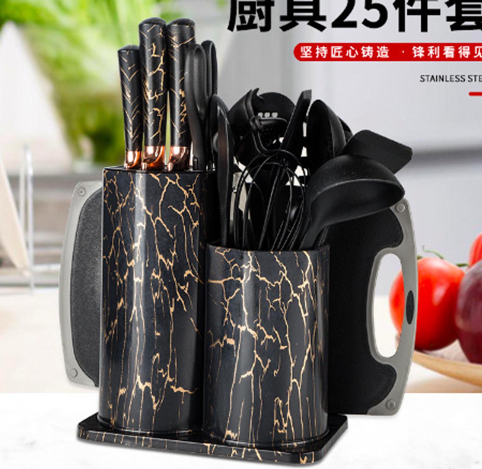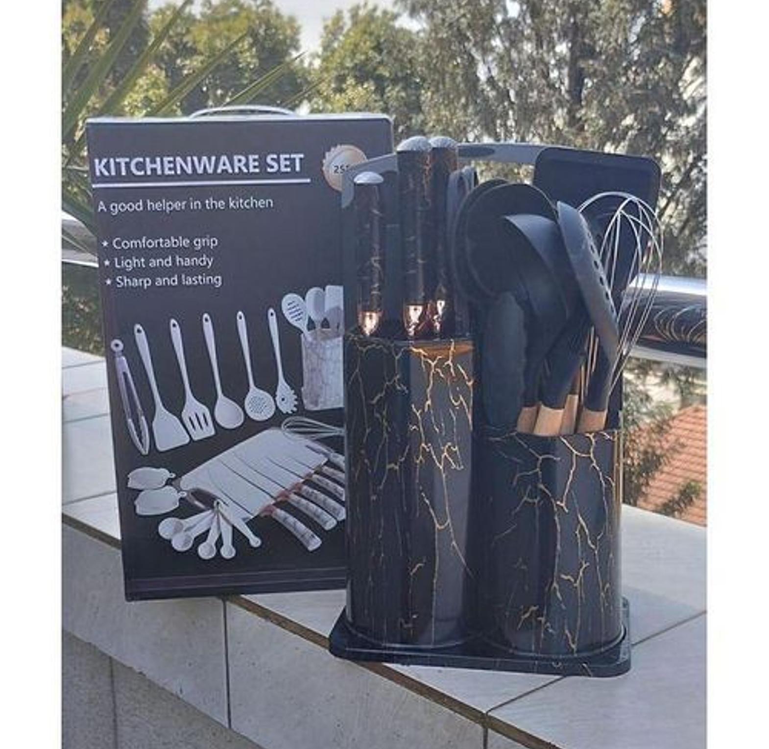 25PCs Marble Silicone Serving and Cooking Utensils Set, a complete kitchen companion designed for both amateur and professional ch6097efs. This comprehensive set includes everything you need for cooking, baking, and food preparation, featuring a variety of high-grade silicone utensils, a knife set, and a chopping board. Crafted from premium silicone, these utensils offer long-lasting, non-stick, and heat-resistant performance, making them ideal for everyday kitchen tasks. Safety is paramount, and this utensil set is made from food-grade, BPA-free silicone that is non-toxic and will not react with your food or beverages. The natural wood handles provide an added layer of security and comfort while cooking, ensuring a safe and enjoyable cooking experience. With high-temperature resistance ranging from -40°F to 446°F, you can rest assured that these silicone heads won’t melt or deform under heat. They are gentle on nonstick pots and pans, allowing for seamless cooking without scratching or damaging your cookware. Cleaning up is a breeze with this set, as the combination of premium silicone and natural wood makes maintenance simple. The lightweight, renewable wooden handles prevent scalding and rust, while each handle is designed with a practical hanging hole for easy storage, whether you choose to hook or wall-mount them. This 25PCs set is not just functional but also aesthetically pleasing, making it a perfect gift for anyone who loves to cook. Enhance your kitchen experience and indulge your passion for cooking with this exquisite collection. Order online from Vicmer Store today and enjoy the convenience of having this essential kitchenware delivered right to your door!