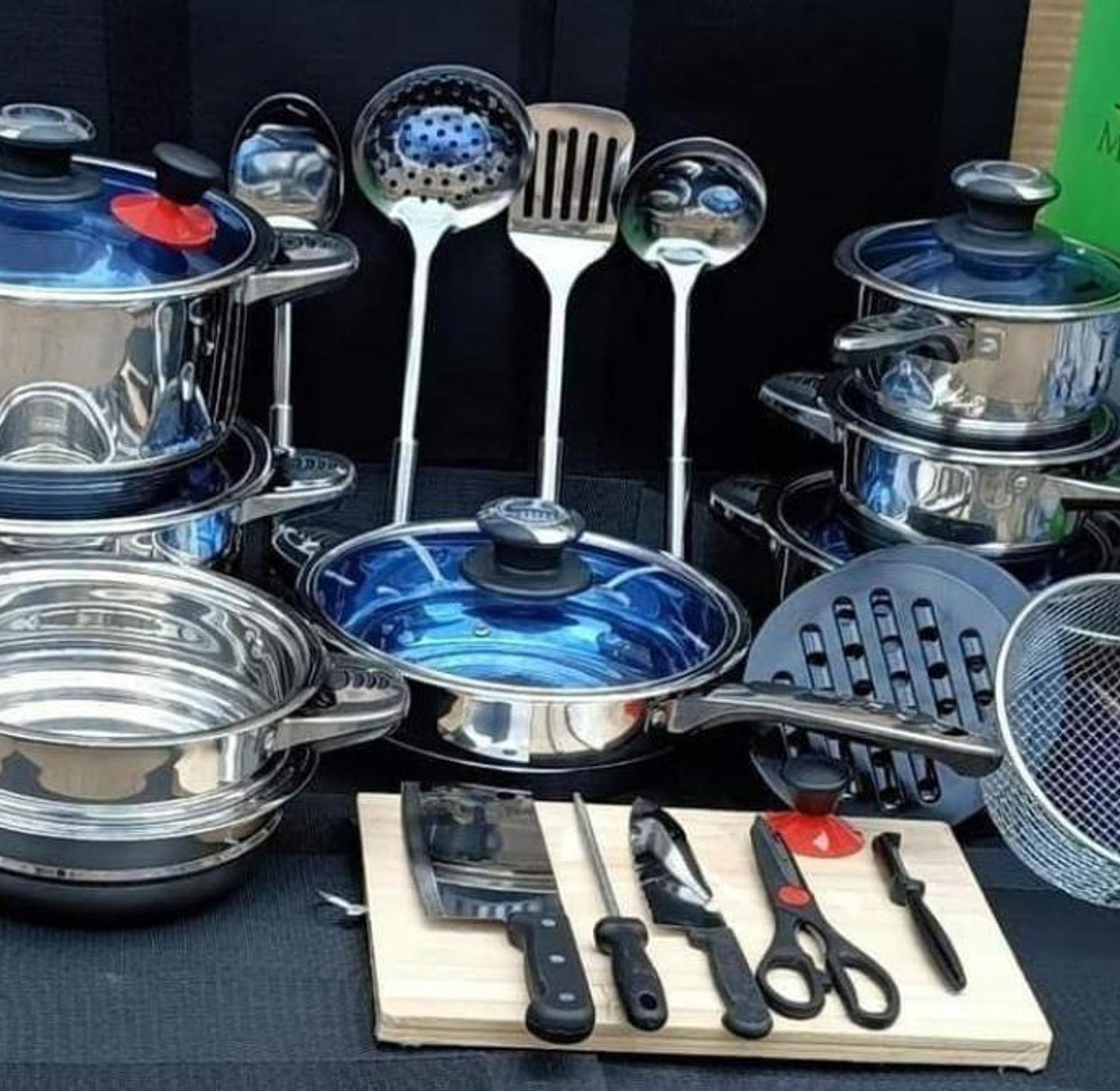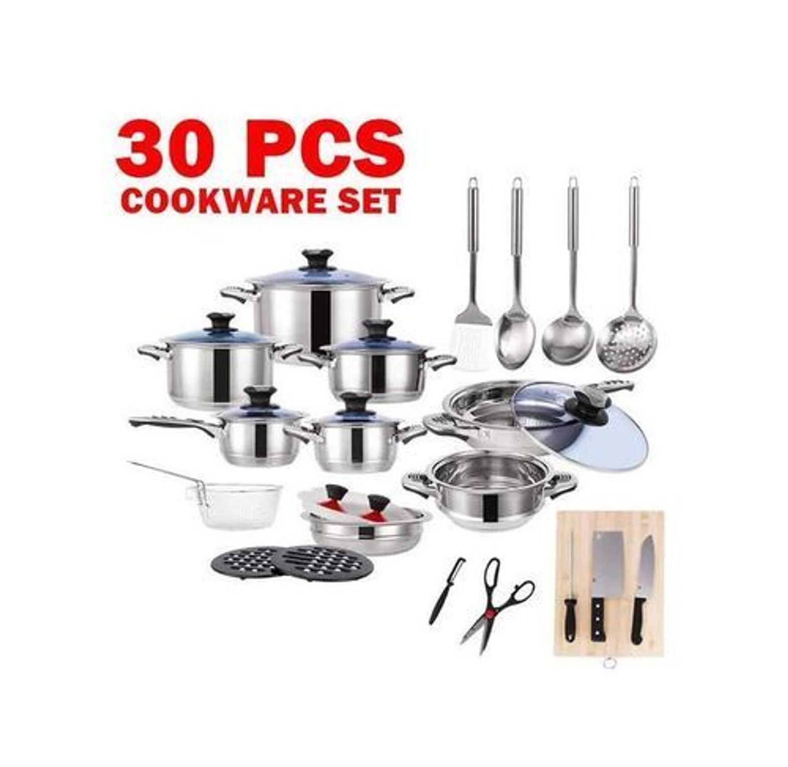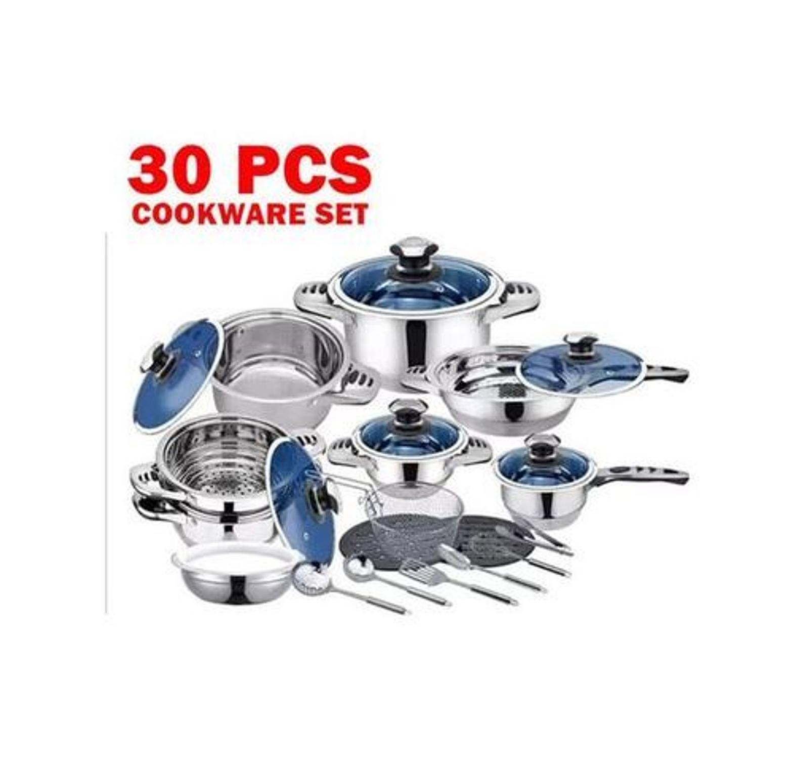 Buy MARWA 30 Pcs Stainless Steel Cookware Set Cooking Pots which is made from durable stainless steel cooking pots provides long-lasting superior .Non-stick performance. This 30 Pcs Stainless Steel Cookware Set Cooking Pot has different sizes for different cooking needs hence you can cook different delicacies. It is light and easy to maintain with a protective layer added to make it less reactive and more scratch-resistant. 30 Pcs Stainless Steel Cookware Set Cooking Pots also has Glass lids makes viewing food easy from start to finish. It is both a healthy and Eco-friendly way to cook, suitable for home, can be used for a long time. Furthermore, this cookware set spreads heat evenly and is energy efficient, and makes it easier to regulate heat so the food does not burn and stick.