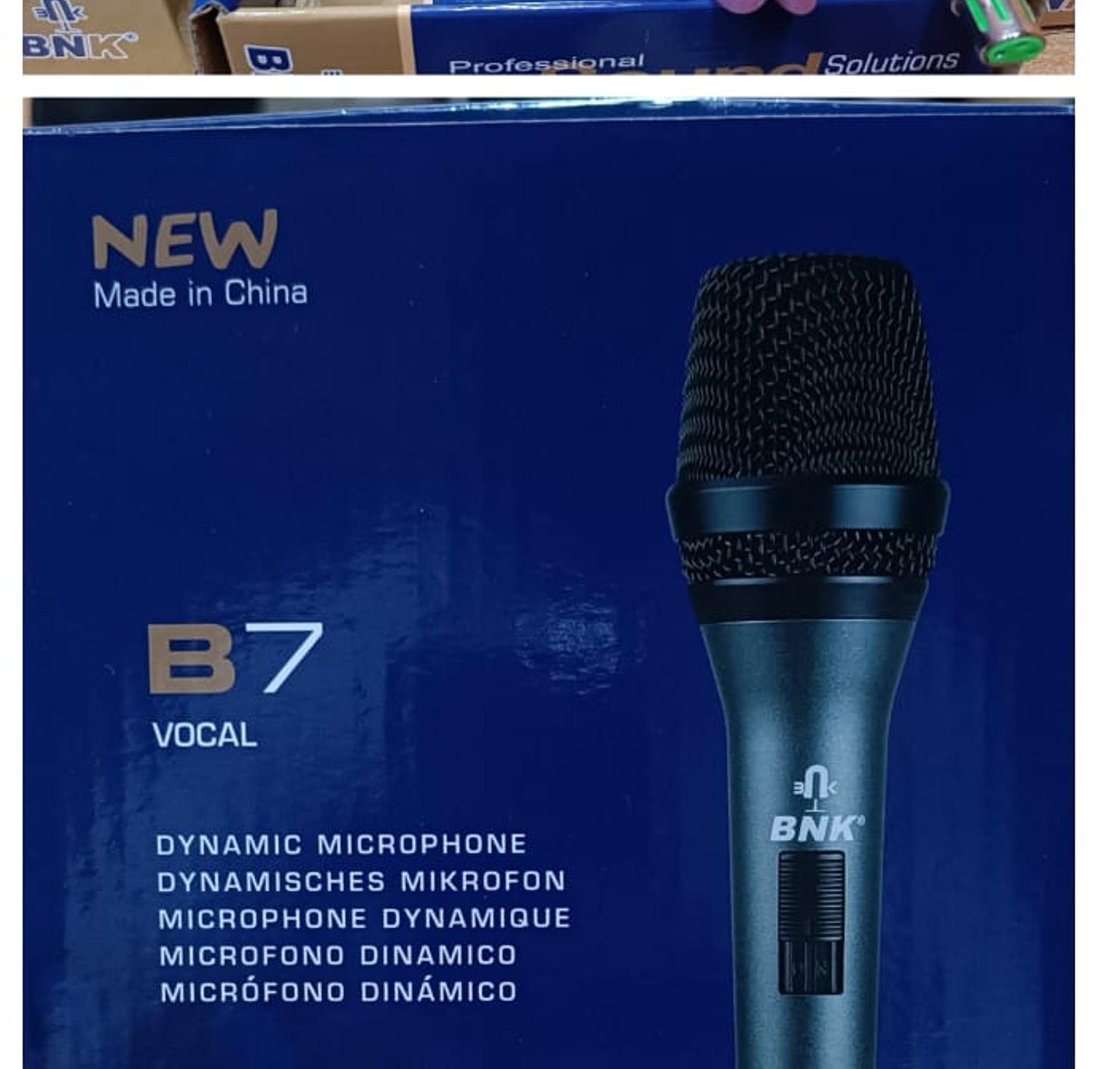 BNK B7 Professional Dynamic Microphone, a wired microphone designed for vocal and instrumental use. It features a cardioid polar pattern for good signal isolation and feedback rejection. It is made of metal and has a zinc die-cast body. The microphone has a frequency response of 50Hz to 15kHz and an impedance of 600Ω. It is suitable for live performances, studio recordings, and podcasting. Dynamic mics like this one are known for their durability and ability to handle high sound pressure levels, making them ideal for loud sources like guitar amps and drums. The microphone comes with a 5-meter XLR cable. It can be used for both vocals and instruments, and is commonly used for recording vocals, drums, and electric guitars