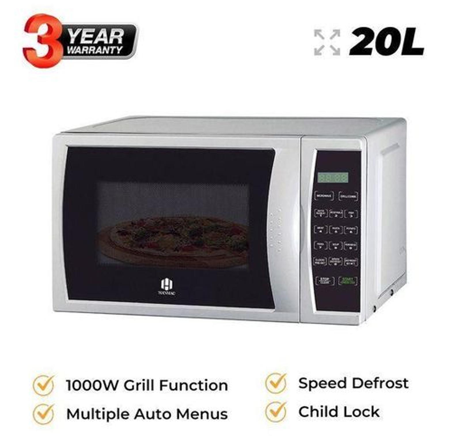 Achieve a perfect sear and crispiness with the powerful 1000W grill feature, ideal for grilling and browning a wide range of dishes to perfection. 99'99" Cooking Timer Master the art of timing with an extended 99-minute and 99-second digital timer, guaranteeing your dishes are cooked to perfection. Speed Defrost Quickly bring frozen foods to cooking readiness with the efficient Speed Defrost feature, maintaining food quality while saving time. Cooking End Signal Stay on top of your cooking with an audible alert that notifies you the instant your meal is ready to be enjoyed. 9 Auto Menus Simplify meal preparation with 9 pre-set menus for popular foods like popcorn, pizza, and vegetables, allowing for effortless, one-touch cooking. Child Safety Lock Keep the little ones safe with a reliable child safety lock, preventing accidental operation or tampering. Speed Cooking Serve up delicious meals in record time without sacrificing flavor or texture, thanks to the rapid cooking function. Glass Turntable Achieve uniform cooking results with the durable glass turntable, designed for even heat distribution and easy maintenance.