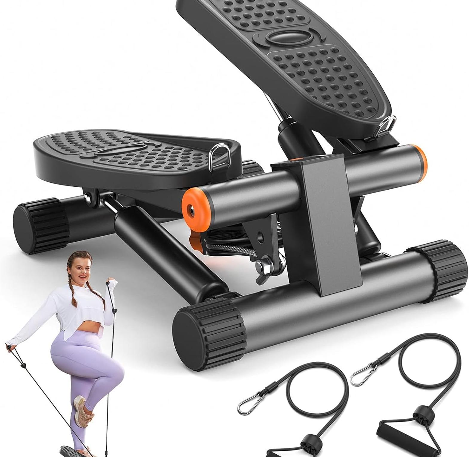 This mini exercise stepper machine is built with the latest detachable ABS material footplates, with super non-slip and super wear-resistant functions. The V-texture provides a good cushioning effect to protect the knee from hurting. Besides, it is more convenient to clean by removing the pedal. The stair stepper is adopted European advanced hydraulic cylinder and horizontal balance base, stronger grip, no shaking, noise is less than 20dB, you can enjoy it in a super quiet environment without disturbing your families or neighbours. (Note: the hydraulic tube needs rest after 20-minute exercises.) The fitness steppers equipment is equipped with a mat to protect the floor, also with 2 detachable resistance bands that allow you to exercise , chest, back, waist, buttocks, and shoulders while exercising your legs. Perfect for weight loss, body shape, and daily exercise, super fit for women and men to build a perfect figure! Small but Loading-Bearing Stronger】:The pedal exerciser stepper machine made of high-quality iron material, strong and durable, safe and reliable for long service. Supporting max weight up to 330 lb / 150kg. What's more, It only takes up little space, you can put it in any place in the house, and exercise at any time conveniently. No need to go Gym anymore! Save your time and money