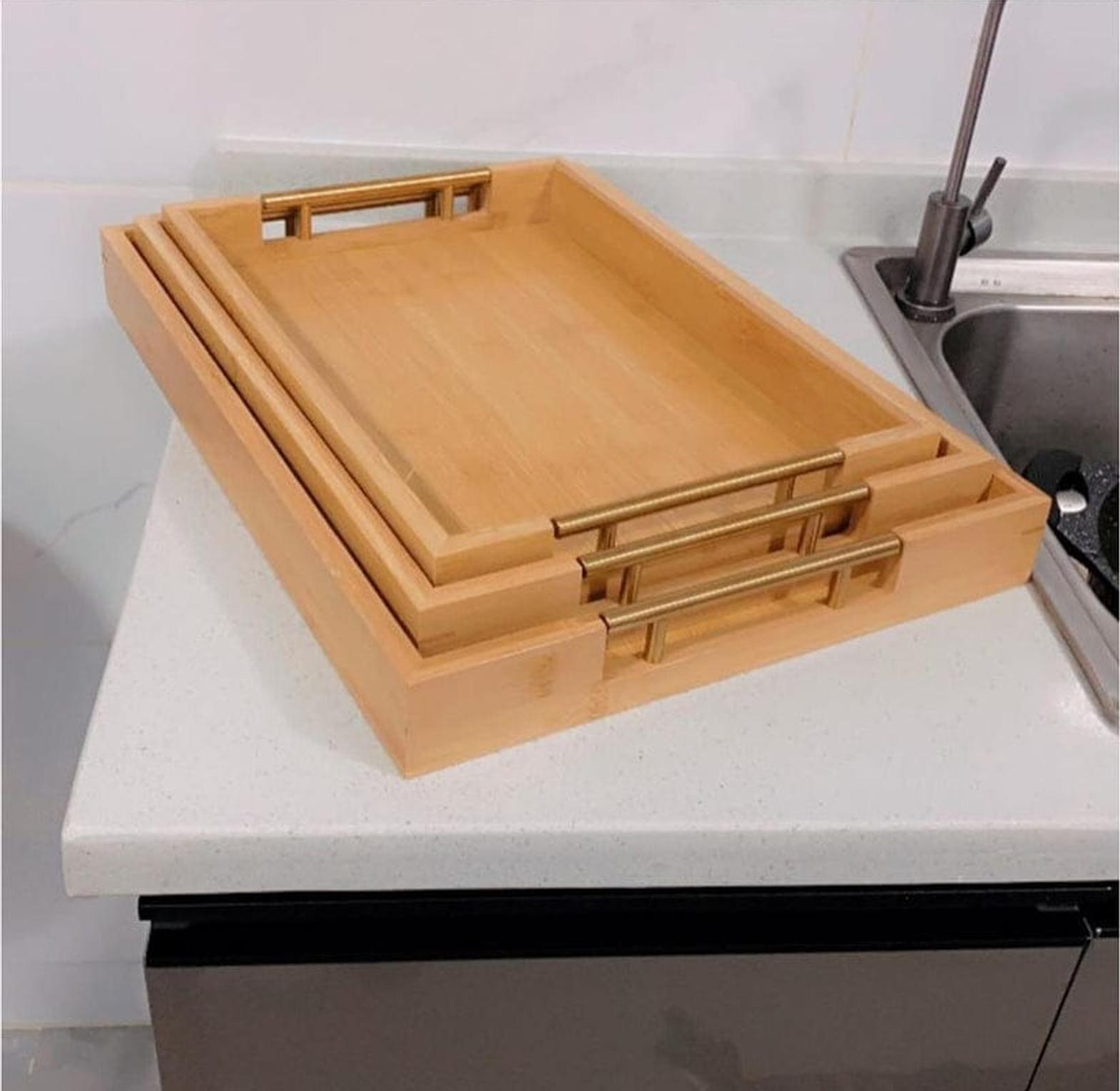 This rectangular bamboo serving tray is made of high quality bamboo known to be environmentally friendly, healthy, durable and beautiful. The natural bamboo of the large serving tray is sustainable and renewable, helps to reduce carbon dioxide gases blamed for global warming. The wood serving tray is the perfect accent to you. 3 PIECE TRAY SET – This 3-piece bamboo tray set is ideal for carrying food and drinks, serving breakfast or afternoon tea in style or for using them as storage trays for smaller items. Please note, this item is not to be used in direct contact with food stuffs. Multi-functional: Do you want to impress your lover in the morning? Serve your partner a thoughtful breakfast in bed, a meal while watching TV or just about how you want on this bamboo serving tray! It is definitely a good helper for serving tea, coffee, wine, perfume, candy, napkins, succulents, and any other items you can imagine. Practical Details: Stylish and space-saving side handles make it easy to hold. Likewise, the two raised edges of this rectangular tray could well prevent objects from falling. You can carry multiple items at once without worry. DURABLE AND EASY CLEAN – Being made from sturdy and sustainable bamboo, the trays are built to last. They are easy to keep clean too, simply wipe with a damp cloth when necessary.