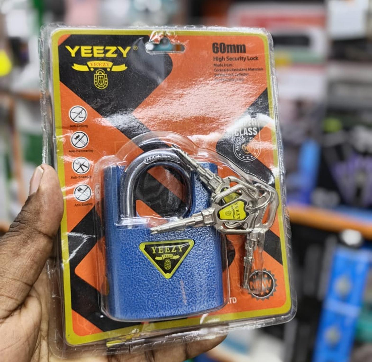 It is a padlock designed for high security, suitable for both indoor and outdoor use. Constructed with materials like zinc alloy for the lock body and brass for the cylinder. Features a hardened steel shackle for enhanced resistance against cutting and attacks. Designed with anti-pick technology for improved security.