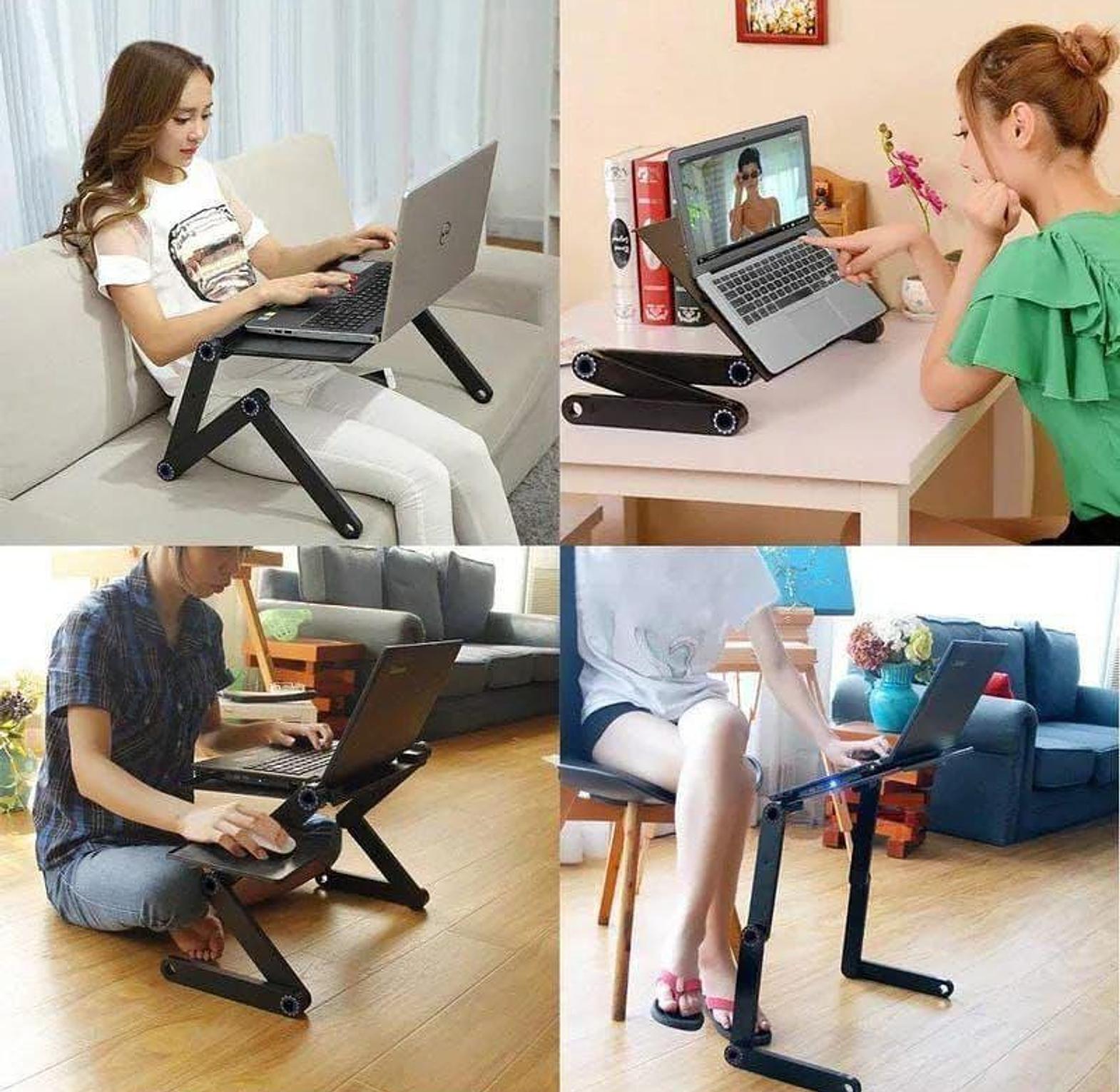 Product Name: Adjustable Laptop Desk Stand with Built-In Mouse Pad for Home Office and Desk Use Adjustable Height: The stand features a fully adjustable height to help you find the most ergonomic position, reducing strain on your neck, back, and wrists. Built-In Mouse Pad: Integrated mouse pad included for added convenience, allowing for seamless workflow without the need for additional accessories. Compact and Portable: Lightweight and foldable design, making it easy to carry and set up wherever you need it, whether at home, in the office, or on the go. Ergonomic Design: Designed to promote healthy posture with an angled surface that improves comfort during long work sessions, perfect for laptops, tablets, or phones. Sturdy Construction: Made from high-quality materials to ensure durability and stability, even with heavy laptops or devices. Non-Slip Base: The stand is equipped with anti-slip pads that keep it firmly in place, providing a stable surface for your laptop or tablet while preventing any unwanted movement.
