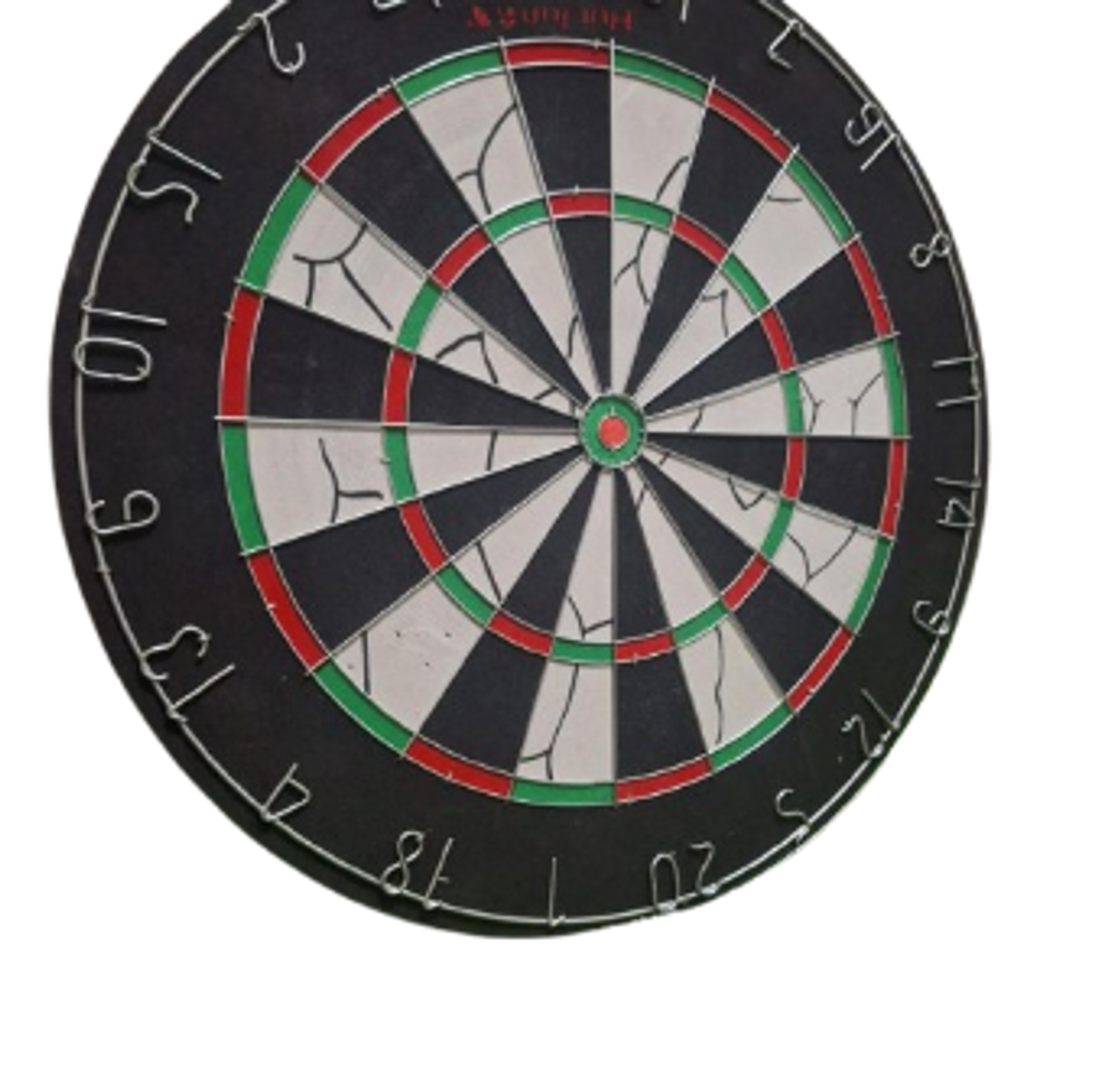 Purpose: A dartboard is a target used in the game of darts, where players throw darts at the board to score points. Construction: Professional dartboards are typically made of compressed high-grade sisal fibers (bristle boards) or flocked material, designed for self-healing properties to withstand repeated impact from steel-tip darts. Features: They often include a staple-free bullseye and dynamic wire design to minimize bounce-outs and improve dart deflection. The number ring is usually removable and rotatable to prolong the board's life.