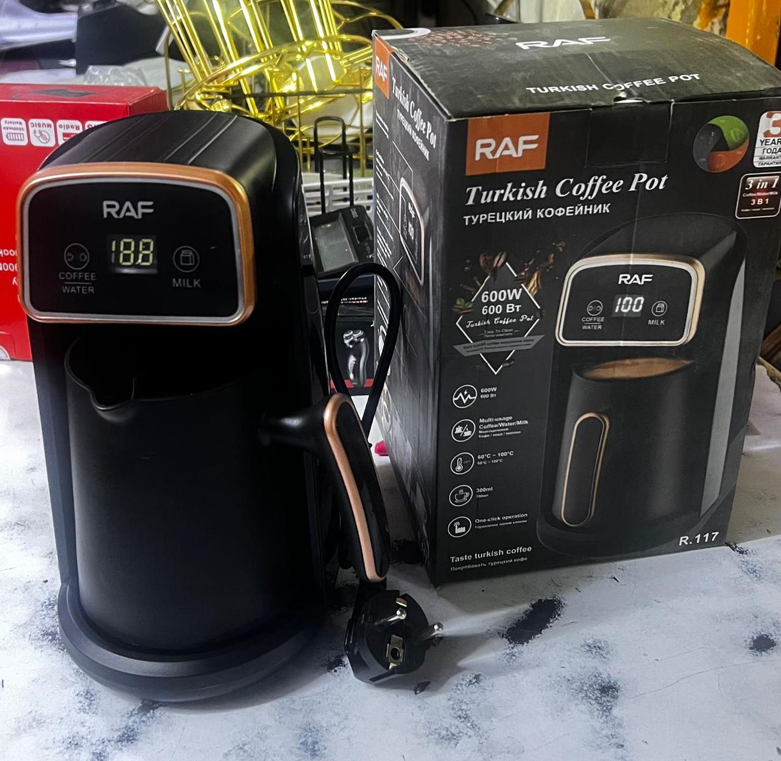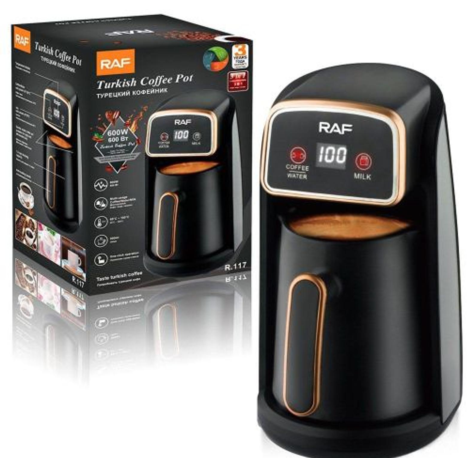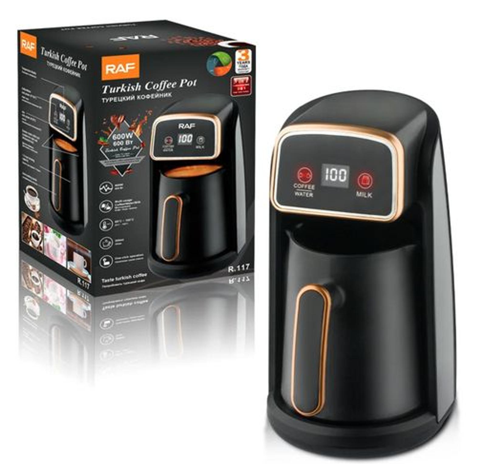 Ideal Turkish coffee in minutes. Turkish coffee mashine pot with just four simple steps, you can make a first-class cup of coffee. Manufacturer: RAF Voltage (v): 220 Power (W): 600W 300ml capacity Smart overflow prevention system Washable pot Ideal brewing at low heat