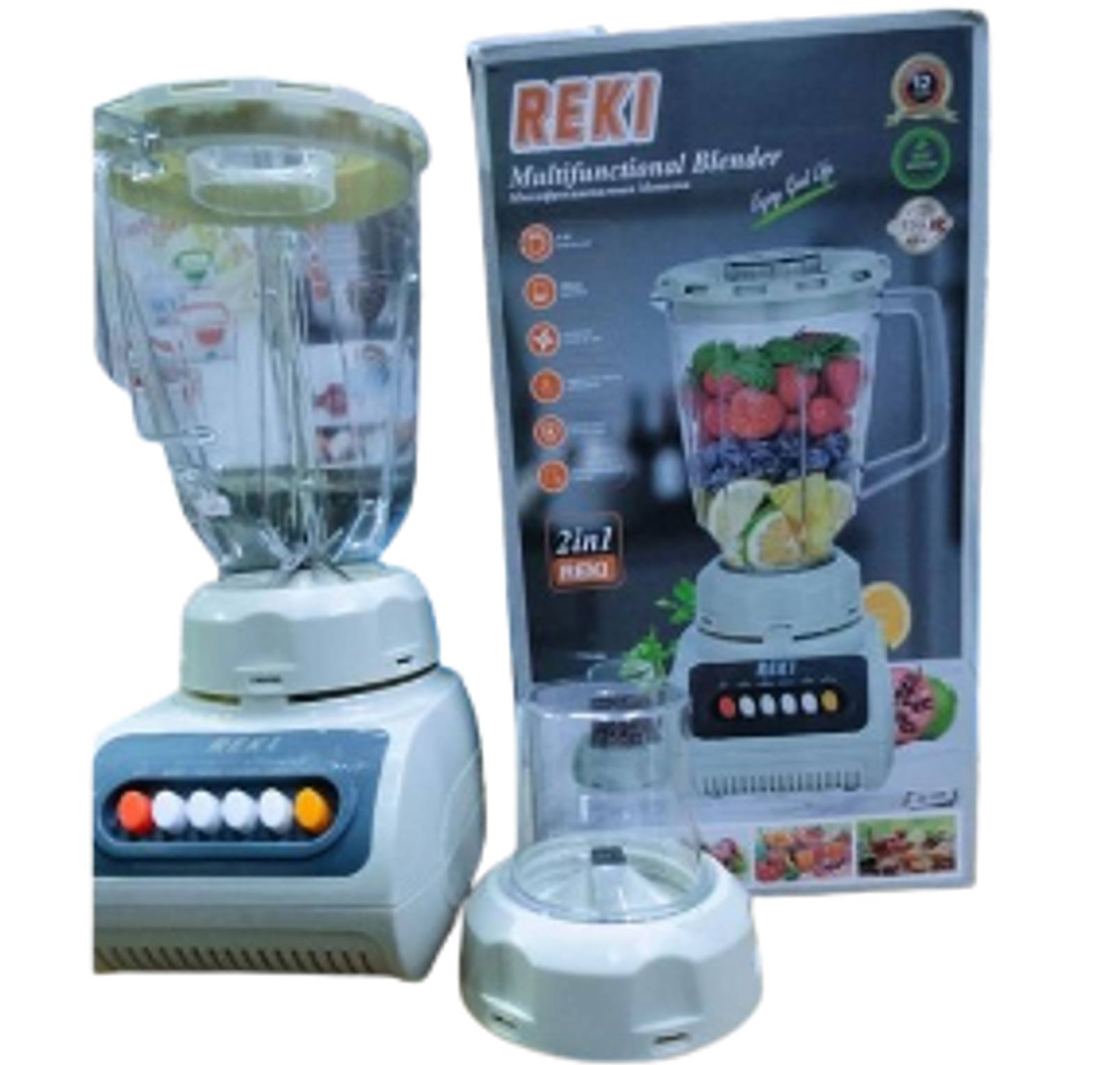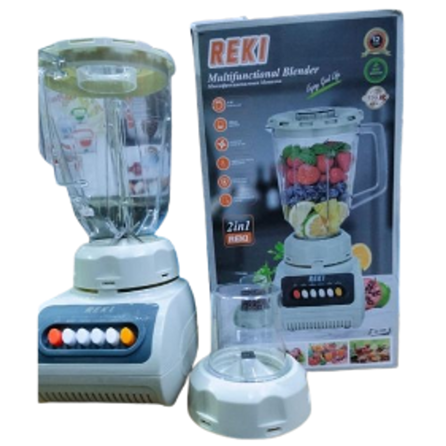 Make your kitchen complete with the REKI Multifunctional Blender, designed for blending, grinding, and mixing with ease. This 2-in-1 blender is perfect for preparing fresh juices, smoothies, sauces, and grinding spices or coffee beans